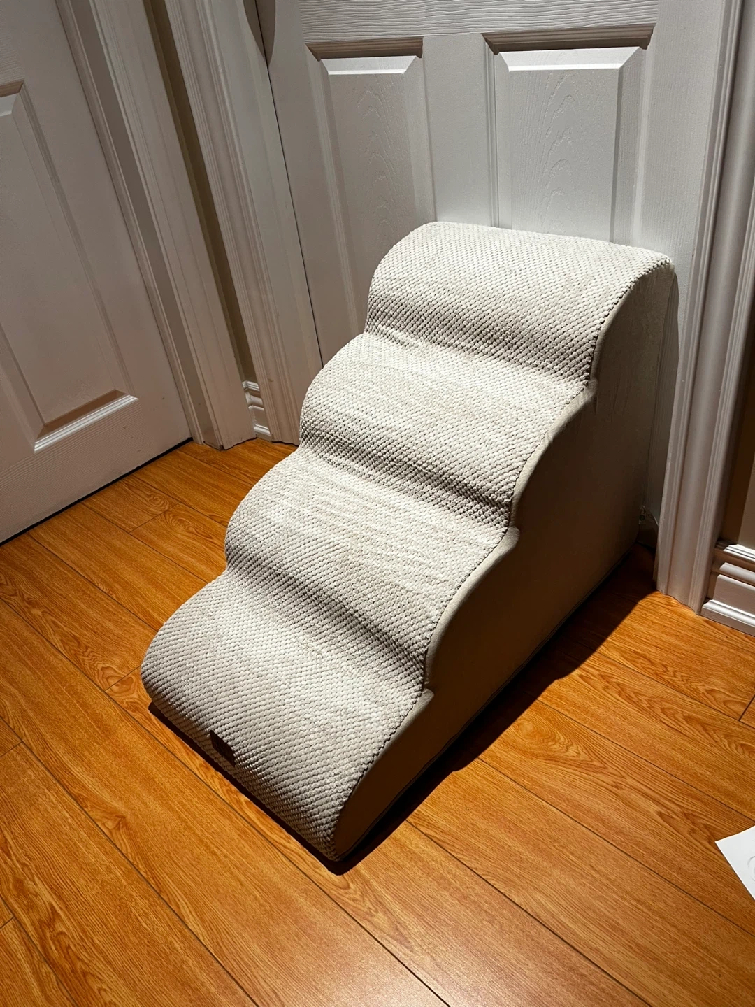 60Selling a set of pet steps, perfect for helping your furry friend reach higher places! These steps are in great condition and have a neutral beige colour that will fit in with any decor. Height 20”, length 28”