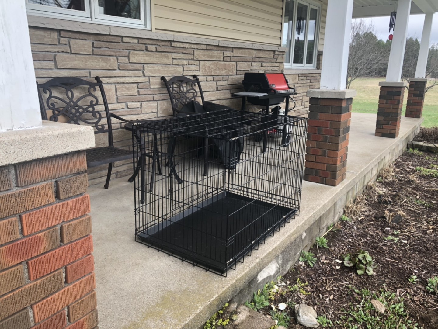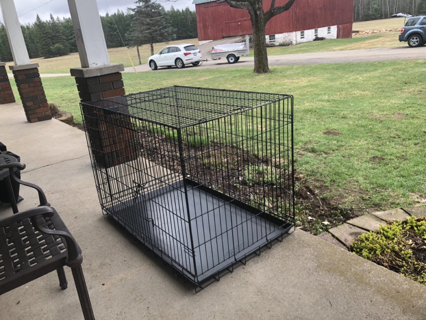 31" tall, 42" long, 27" wide Precision - gently used. Rosie is almost a year old and she's decided she no longer wants to sleep in a crate. 2 doors for easy access