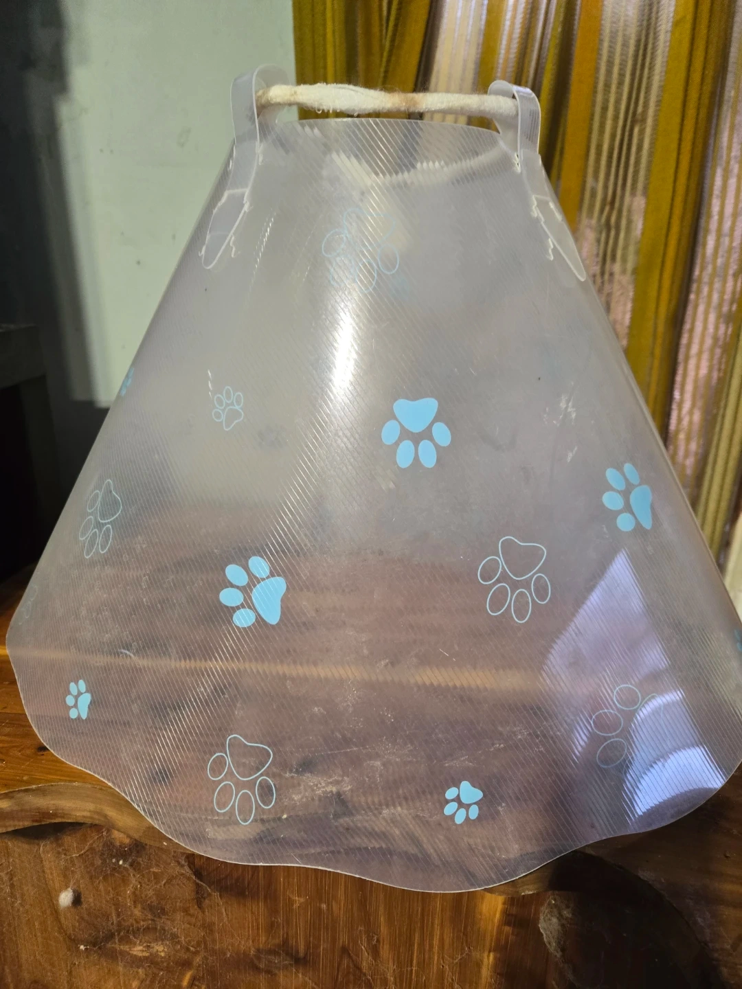 60Selling a dog e-collar with a cute paw print design! It's in good condition and ready to help your furry friend recover comfortably. Perfect for post-surgery or injury recovery to prevent licking or scratching