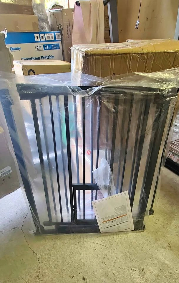 59"×62" extra wide pet gate, metal, tension mount with small door.