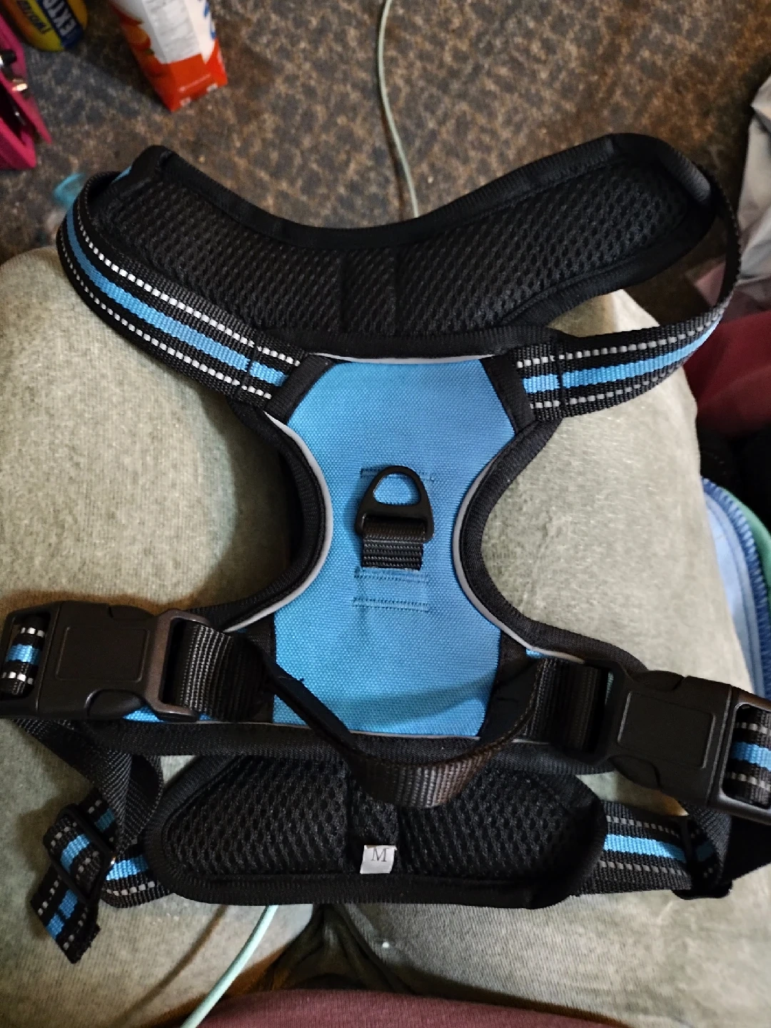 541new in package. Selling a dog harness in size medium. It's black and light blue with a mesh design. Great for walks with your furry friend! it fits smaller dogs, such as pugs and other small breeds. $15 , price is firm. located at Weston and Lawrence.