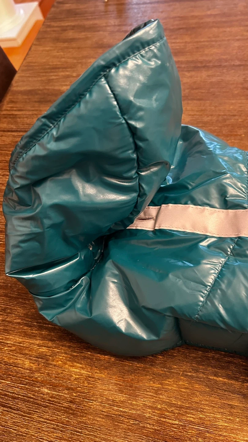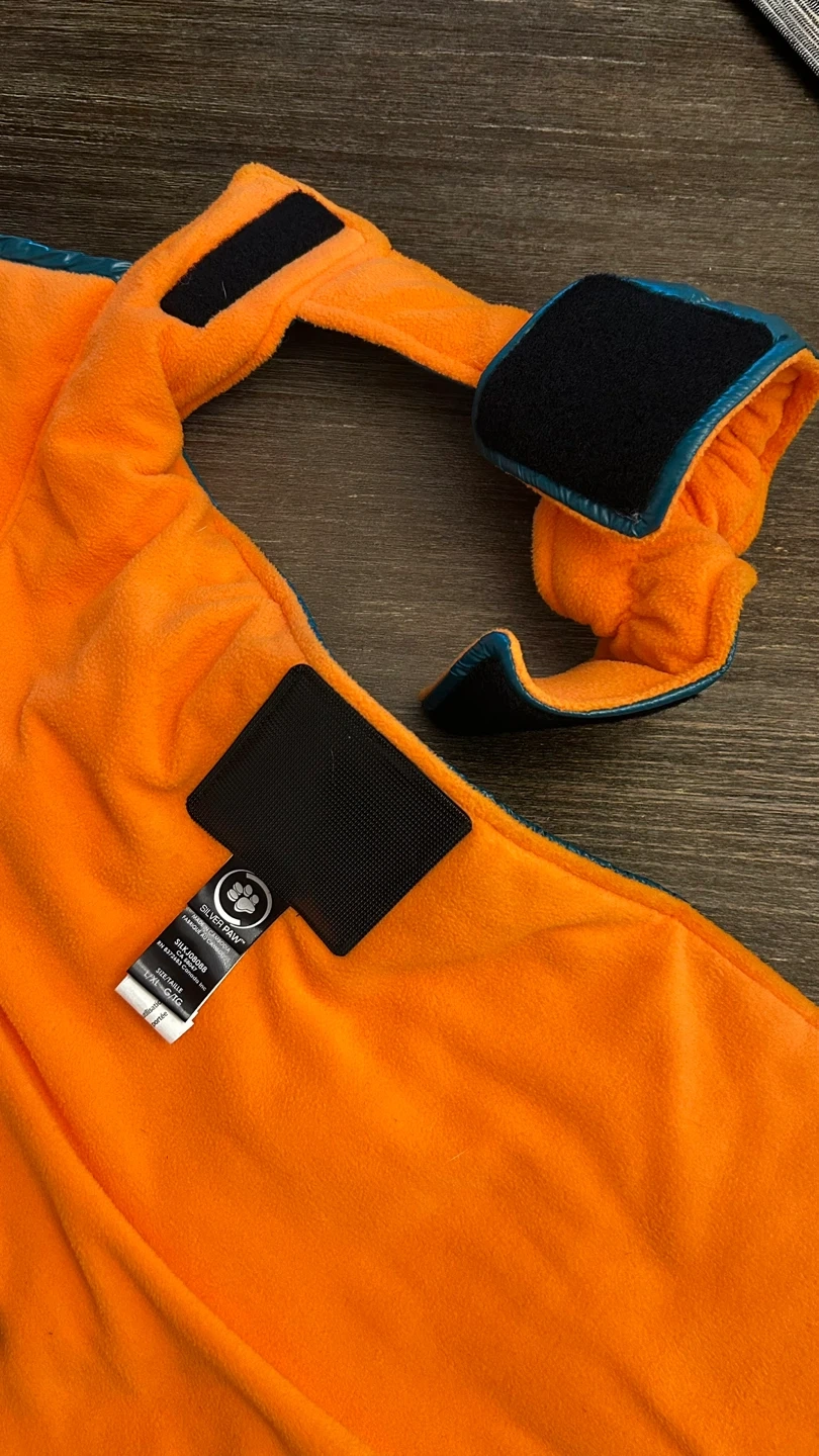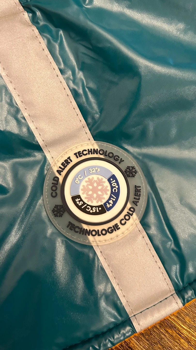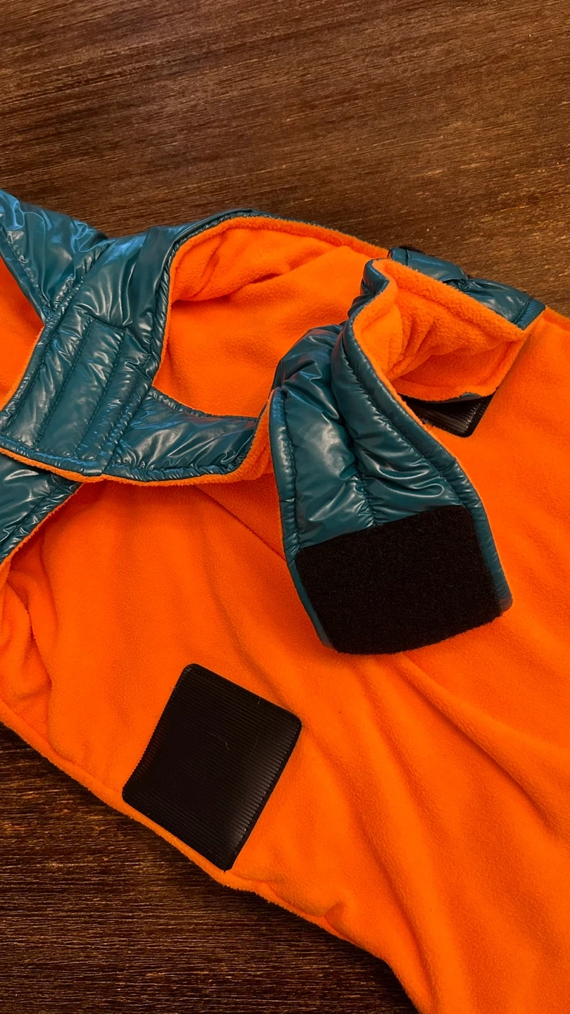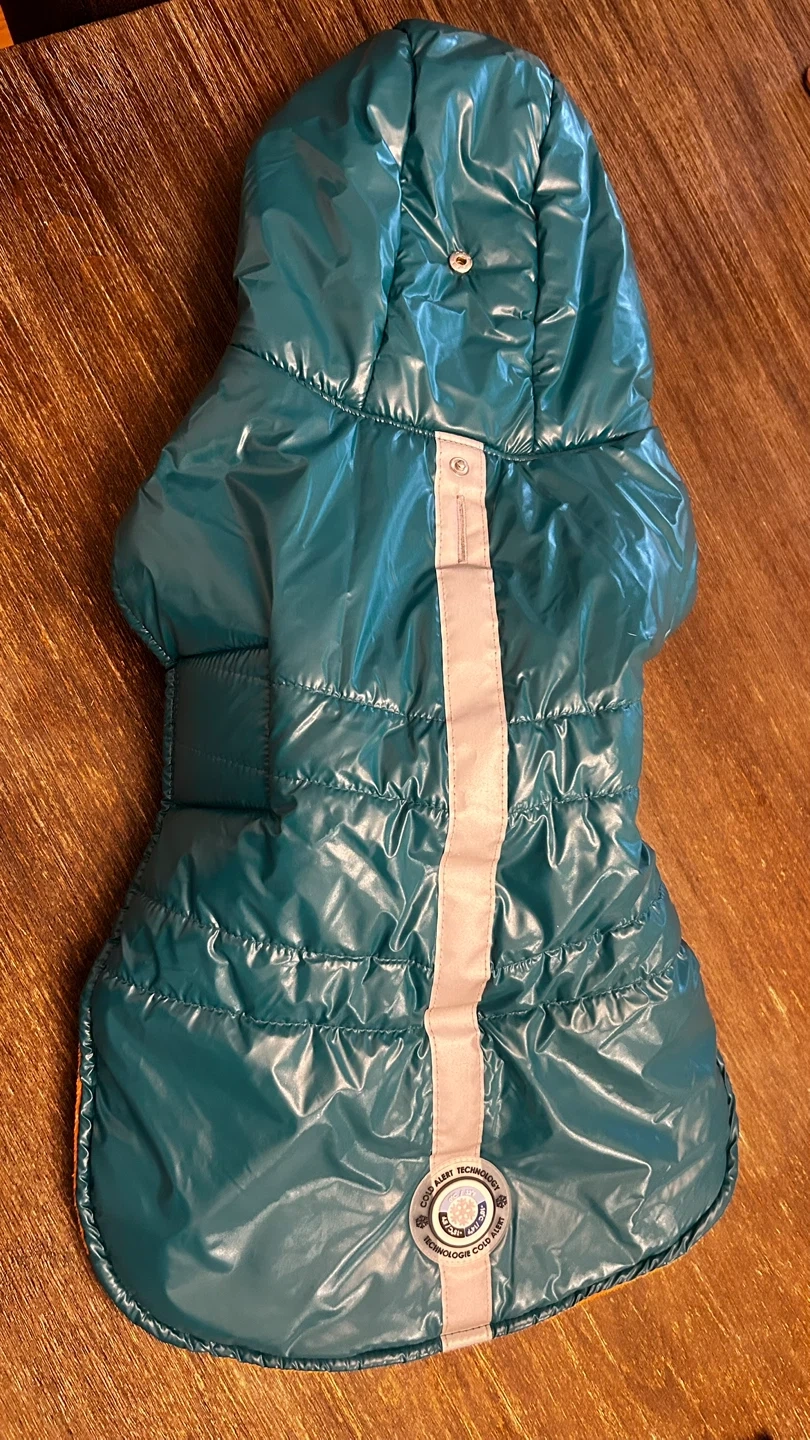 Keep your furry friend warm this winter with a Dog Helios 'Thunder-Crackle' Padded Winter Puffer Coat! The coat features 'cold-alert' technology to help you monitor the temperature. It's teal on the outside and orange on the inside.