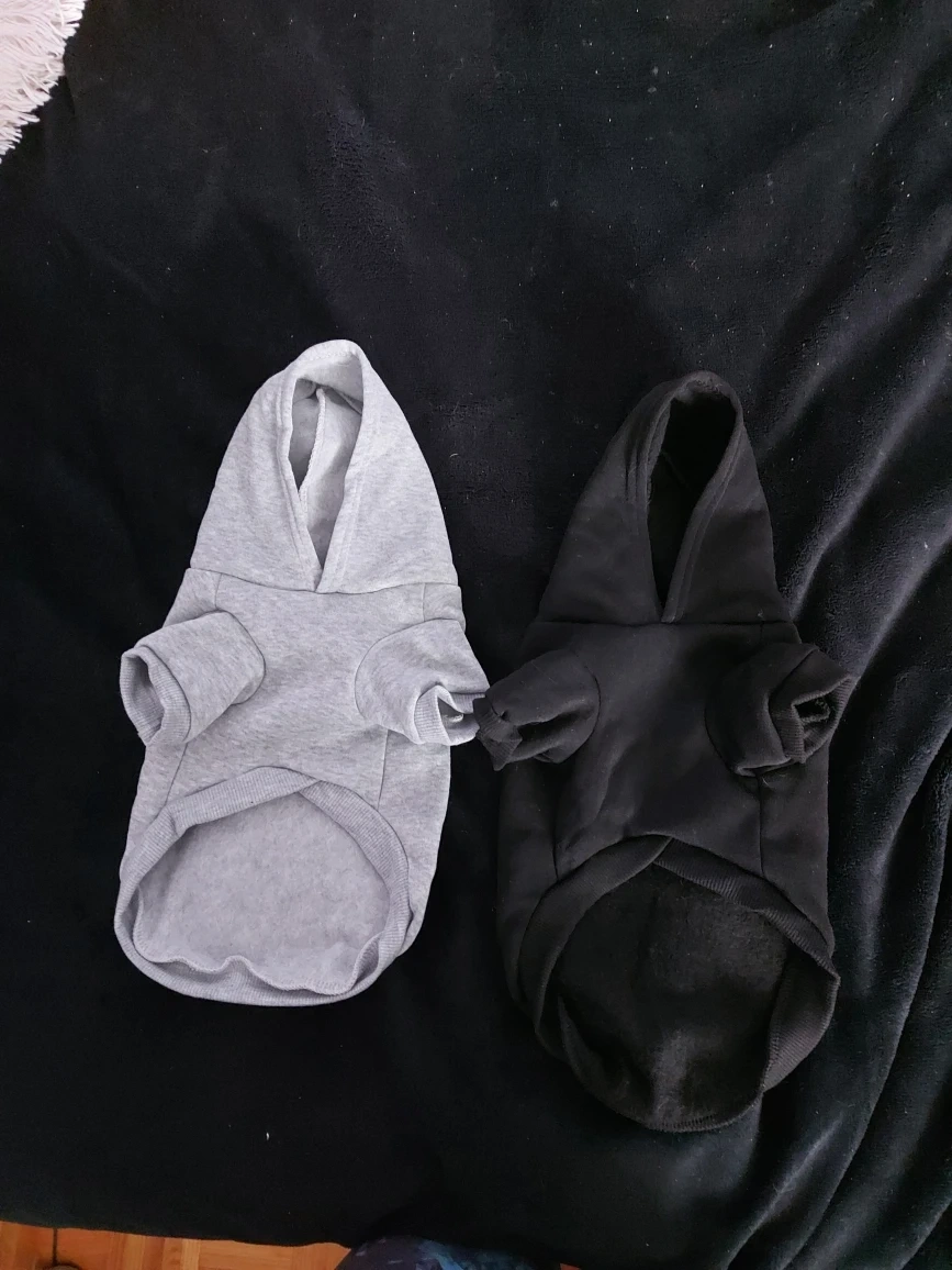 15Two cute dog hoodies, one in grey and one in black! They're in great condition and ready for your furry friend to stay warm and stylish.
