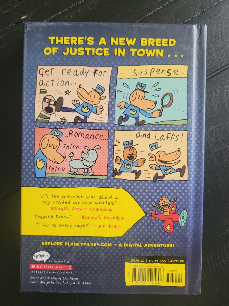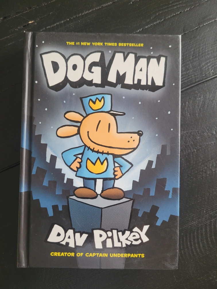Selling a hardcover copy of Dog Man by Dav Pilkey! It's a #1 New York Times bestseller. It is a graphic novel.