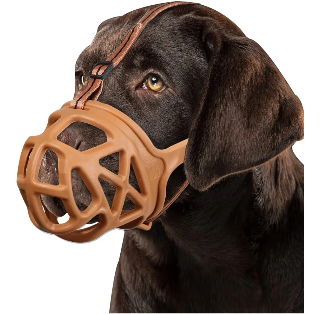 26Dog muzzle in size large. It's designed to allow your dog to pant and drink freely while preventing biting during vet visits, grooming, or other situations. The adjustable straps provide a secure and comfortable fit, and the soft rubber ensures all-around mouth protection