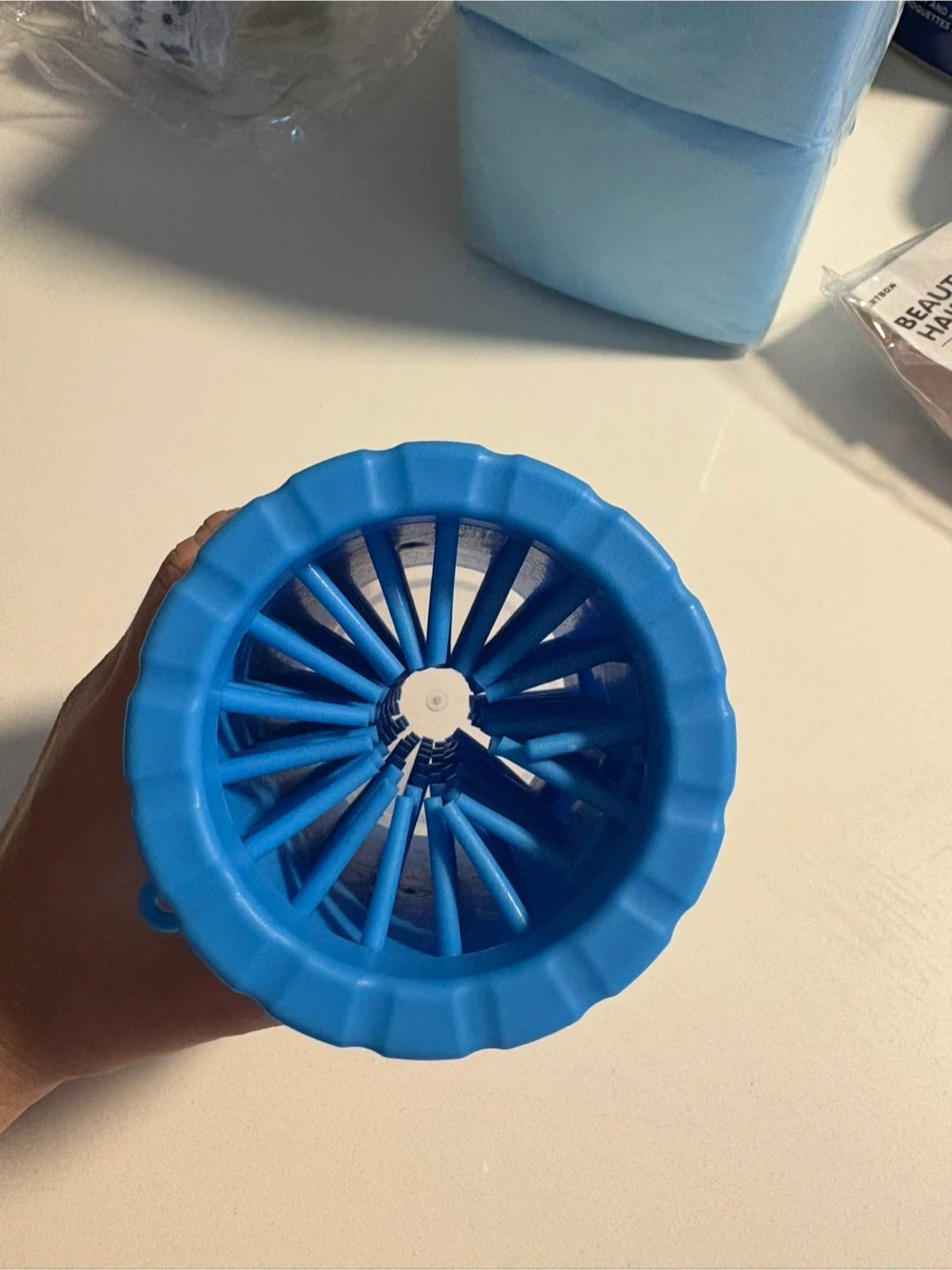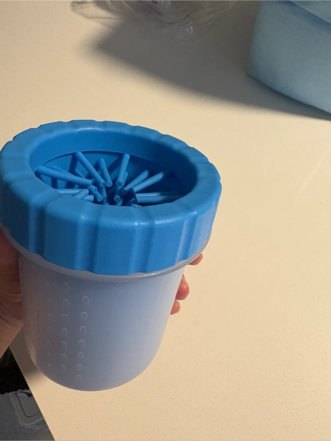 65Selling a dog paw washer. You put soap in and wash by inserting and removing the paws. My dog disliked it so much that it was only used once.