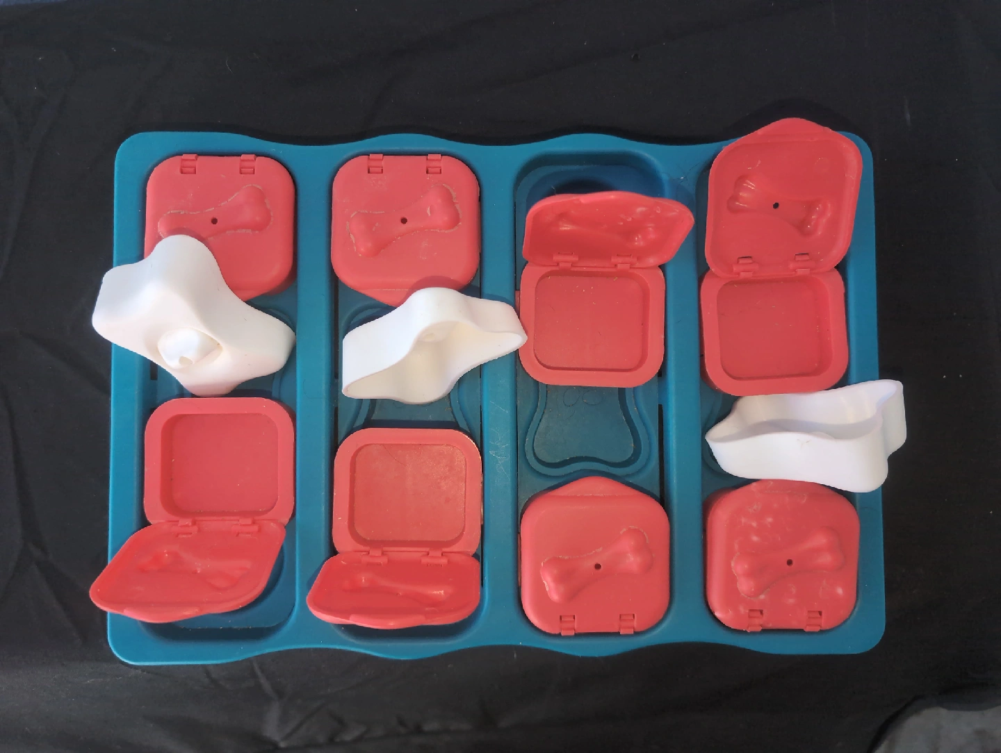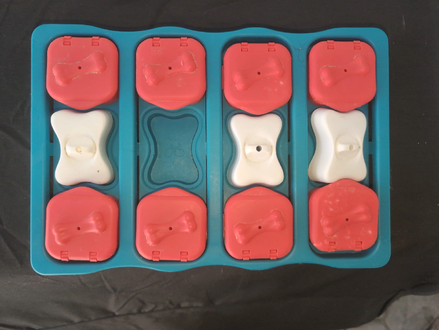 60I'm selling a bundle of dog puzzle toys. One is a StarMark Bob-A-Lot interactive toy, and the other is a Nina Ottosson by Outward Hound interactive puzzle toy. They're both in good condition and ready for a new home! The Ottoson one is missing one of the white plastic bones.