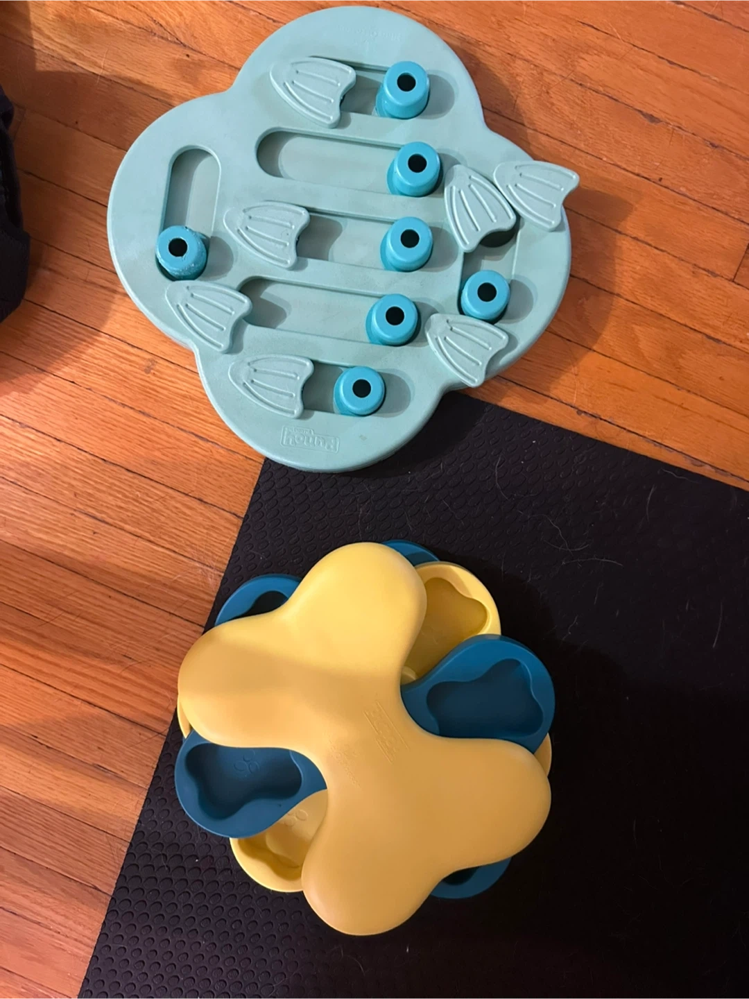 79Selling 3 outward hound puzzle toys. Please let me know which one 2x Nina Ottosson® Outward Hound® Puppy Hide N' Slide Interactive Treat Puzzle Dog Toy - blueish toy 1x Outward Hound® Dog Tornado™ Puzzle Treat Dispensing Dog Toy - yellow and blue toy