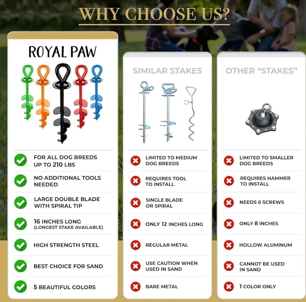 119This ROYAL PAW dog tie-out stake is perfect for camping or just hanging out in the yard! It's designed for large dogs up to 210 lbs. The heavy-duty stake is great for yard, camping and outside use with any dog cable, leash, lead or tether. It comes with a duffel carry bag, EZ-Lever Tool, cleaning brush, and a carabiner clip! Location: Taunton and Townline Check out my other listings