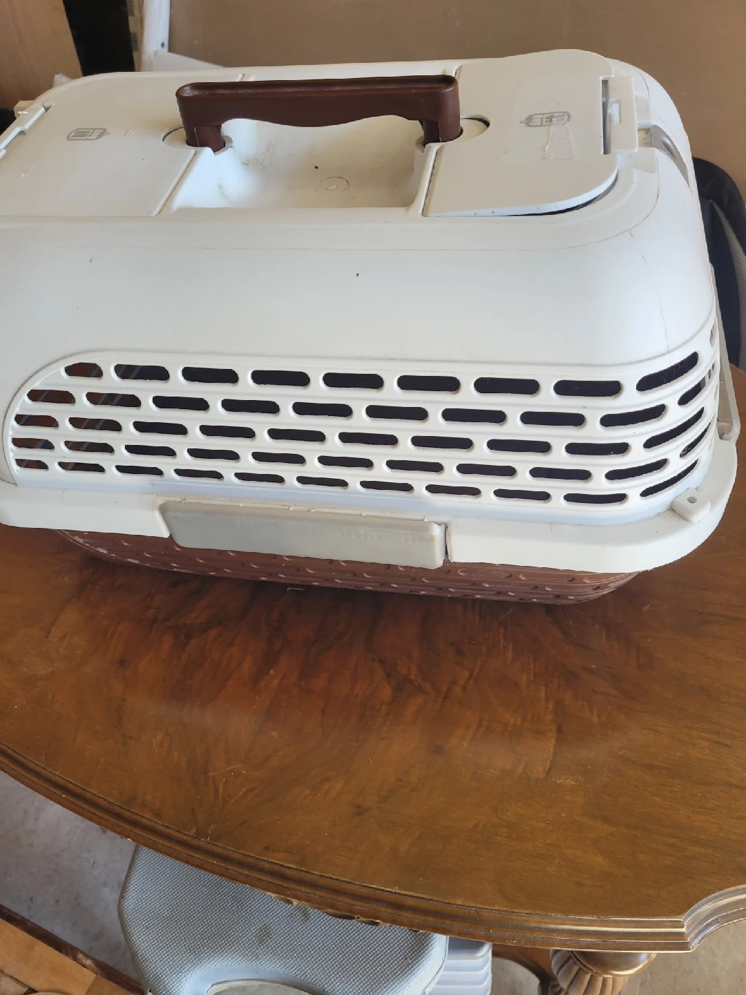 10Selling a Dogit dog carrier in good condition. It's white and brown, perfect for transporting your furry friend safely and comfortably. The carrier features a sturdy handle and secure closures.