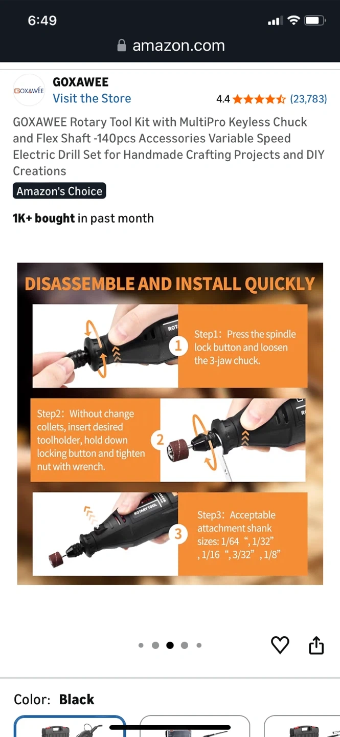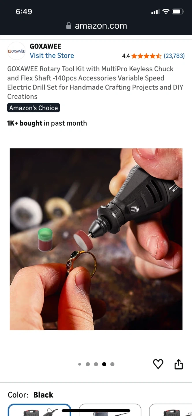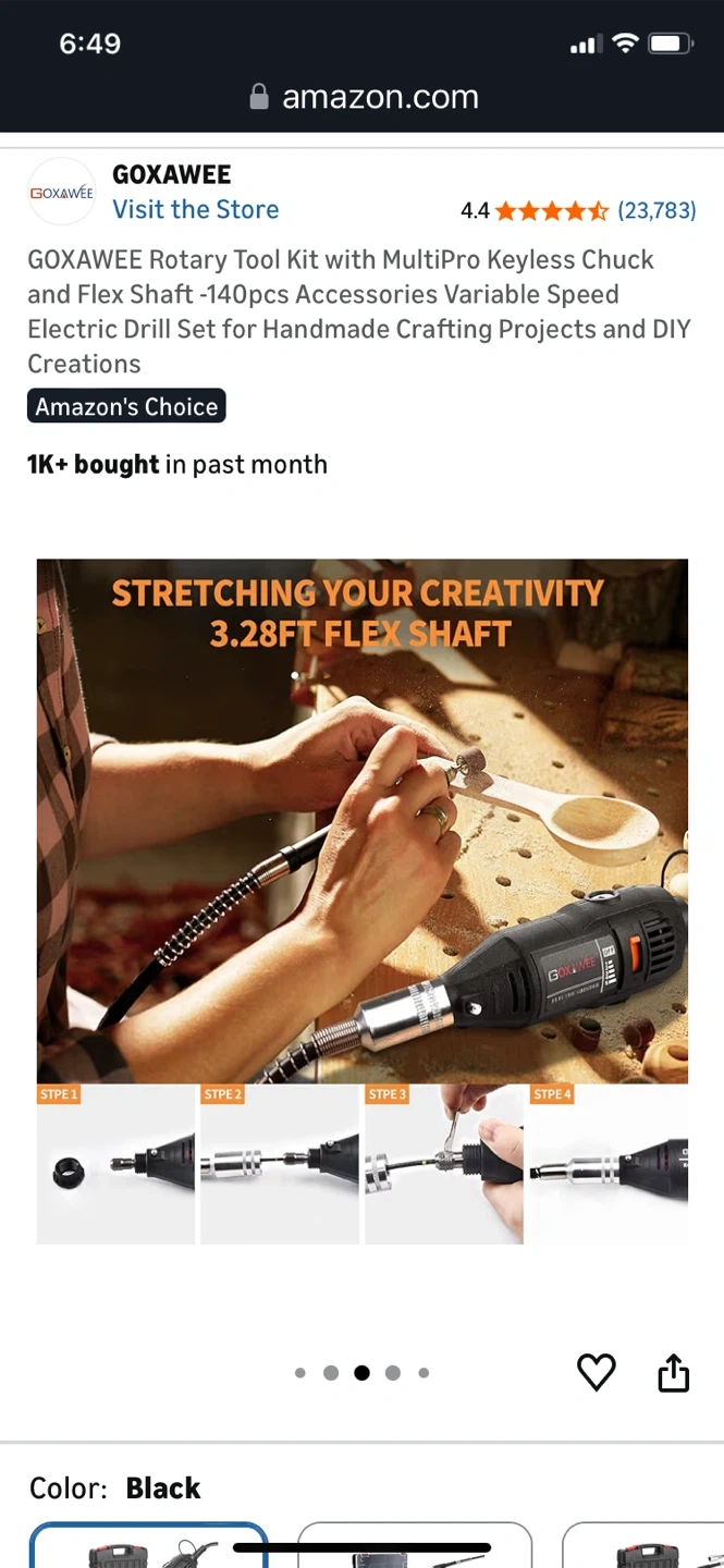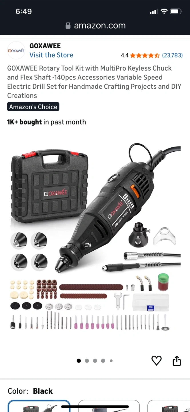 This GOXAWEE rotary tool kit includes a flex shaft and 140 accessories for various crafting projects. It features a multipro keyless chuck and variable speed control ranging from 8000-30000 RPM. Includes a durable carrying case for storage and transport.