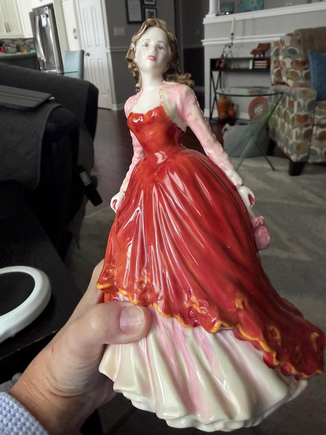 This is a Royal Doulton HN 4100 "Special Occasion" figurine, modelled by Nada Pedley. It's a hand-decorated piece made in England. This classic figurine depicts a lady in a stunning red gown with a pink jacket. It was produced in 1998. 8.25” tall.