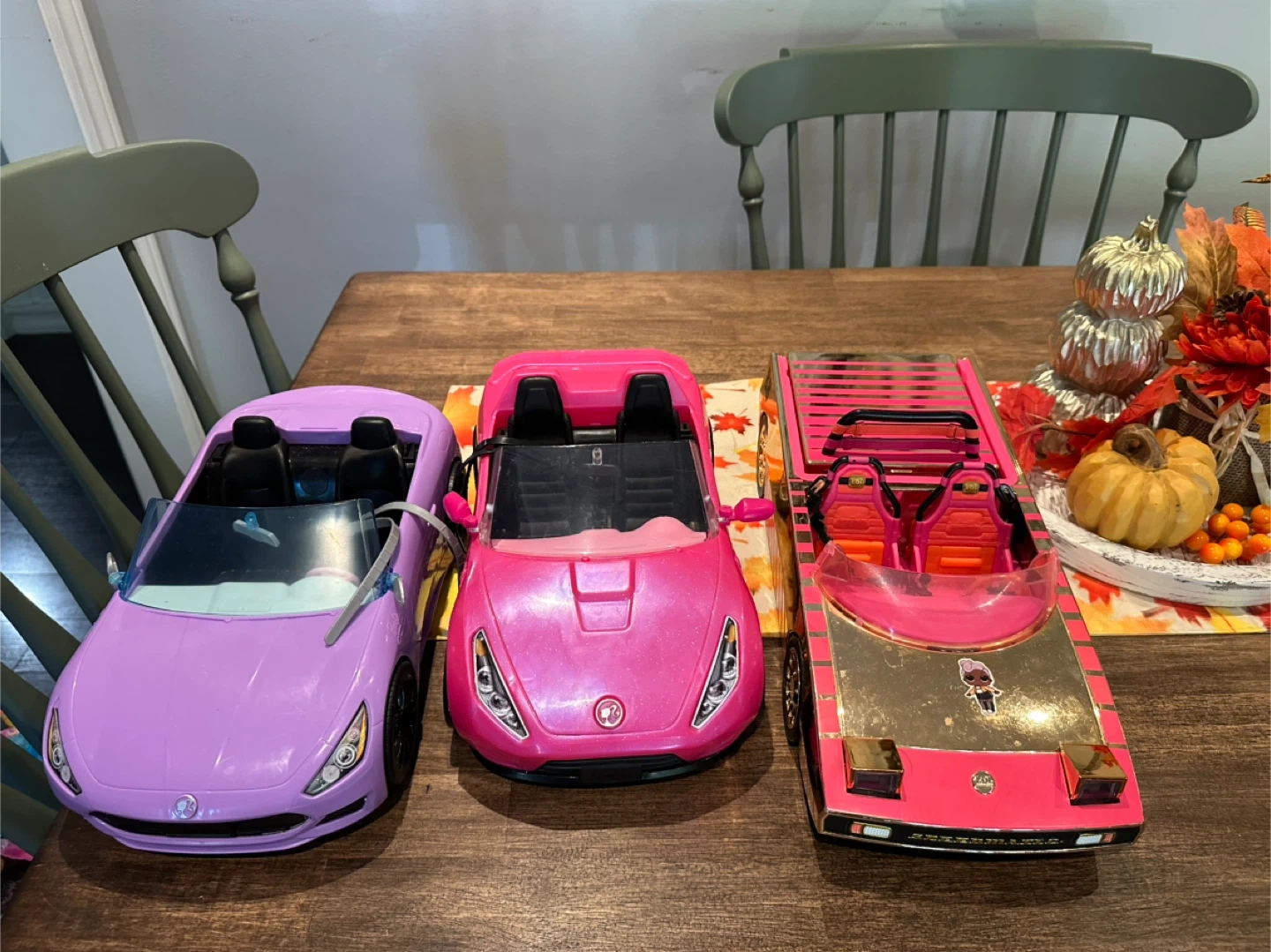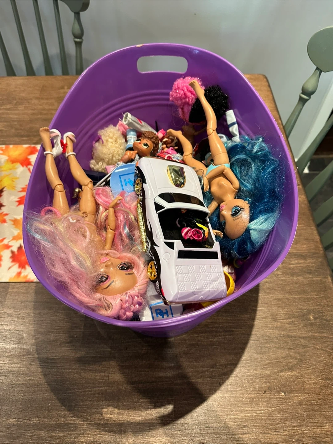 Selling a large lot of dolls and accessories! Includes LOL dolls, Rainbow High dolls, doll clothes, and toy cars. Great for any doll lover! 2 Barbie cars and 1 LOL car- $10 each or $25 for the lot Purple bucket of LOL and Rainbow High dolls and accessories- $25