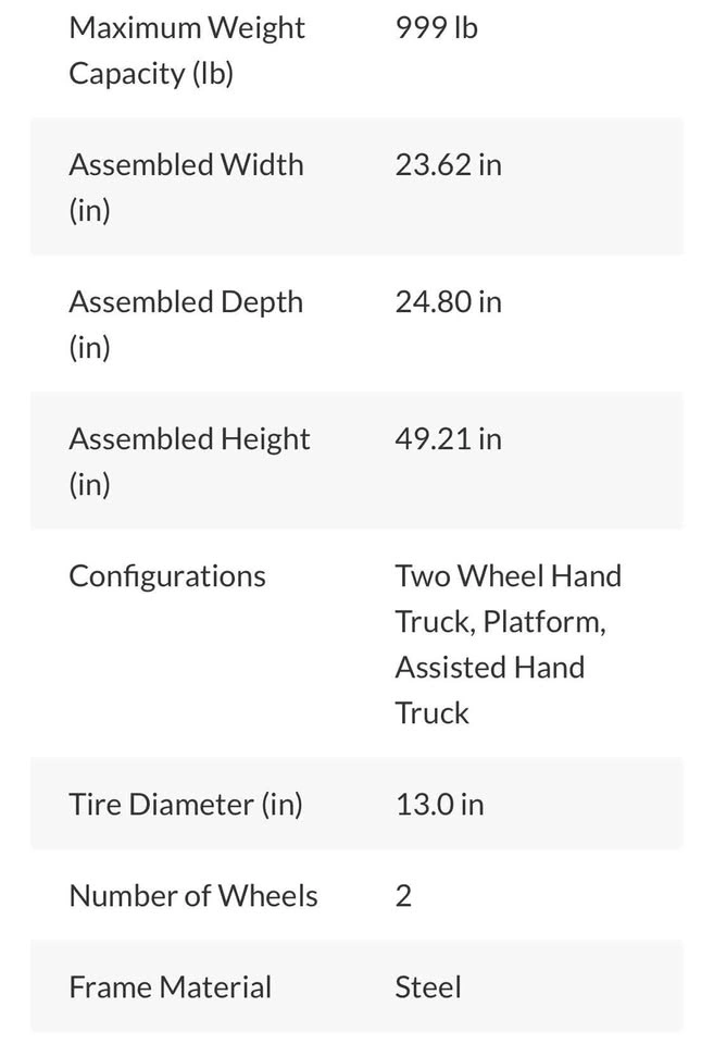 Selling my dolly. Brought in Canadian Tire brand new. Used personally and at work for 2 years. Useful for moving furniture of all size.