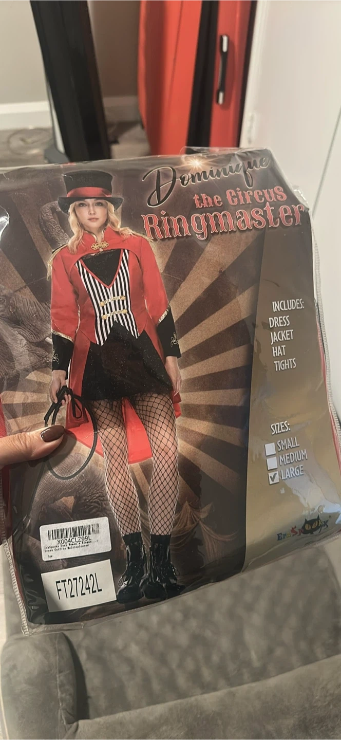 150Selling a brand new, in-package Dominique the Circus Ringmaster costume! This set includes the dress, jacket, hat, and tights. It's a size large, perfect for your next costume party or event