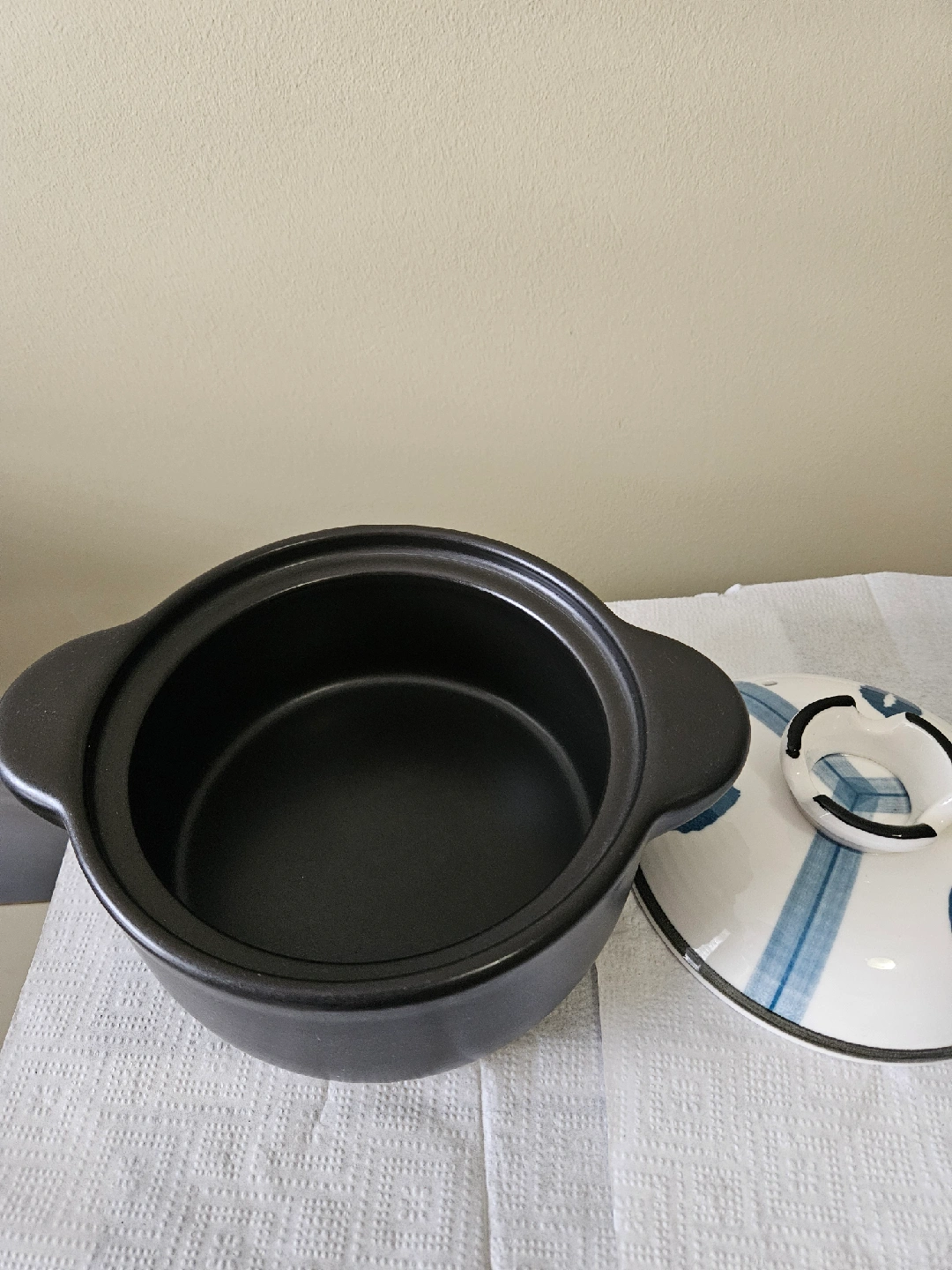 478Selling a Japanese Donabe ceramic pot! It's in great condition and perfect for making hot pot, stews, or rice dishes. The pot features a beautiful design on the lid with blue accents. It's a great addition to any kitchen! Have 2 available.