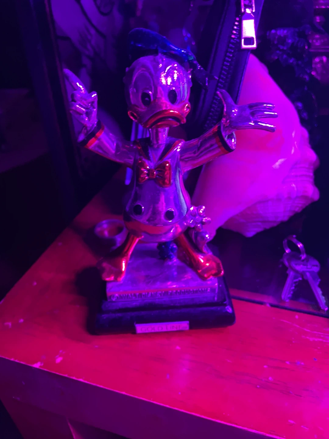 23Selling a Donald Duck figurine. It appears to be made in Italy. It has some scratches on the black base.