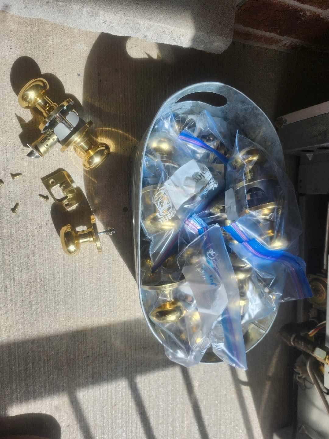 Selling door hinges and knobs. Great for a home renovation project some lock, others don't. entire lot for $20.