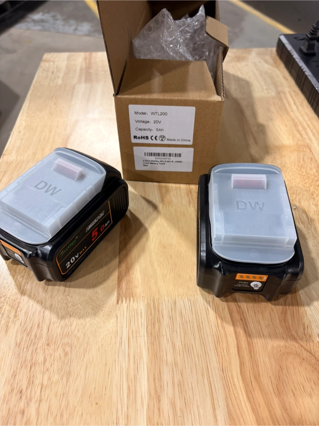 Two Waitley 20V MAX 5.0Ah lithium-ion replacement batteries. These provide 20 volts of power with a 5.0Ah capacity. Includes original box and packaging.