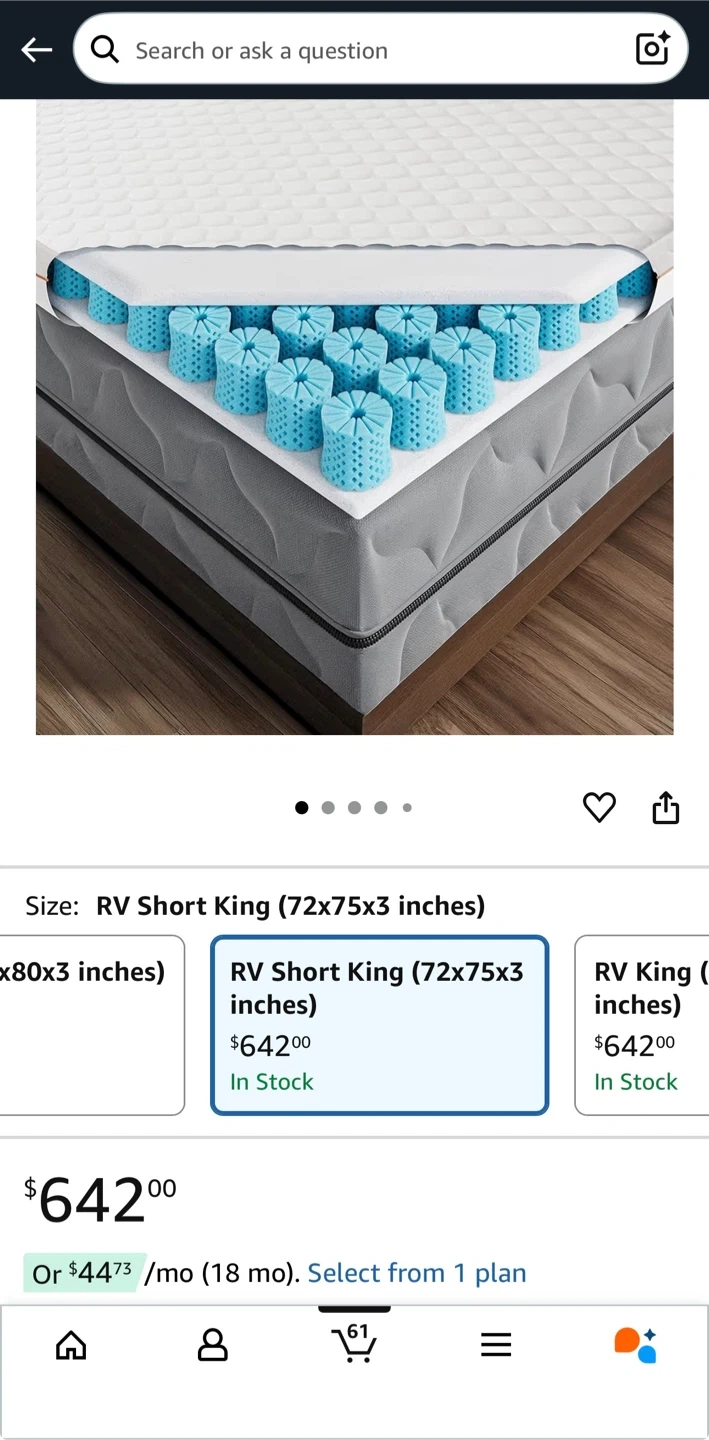 Dormeo RV King Mattress Topper Short King Size 3-Inch Relieving Octaspring Technology Plush Comfort Breathable with smart cover Perfect for side, back, and stomach sleepers Evenly distributing body weight to reduce pressure points Enhanced comfort for a deeper, more restful sleep experience and pressure-relieving support for hip and spine alignment Plush, luxurious feel, giving your mattress an extra layer of softness for ultimate relaxation It cradles your body, enhancing your sleep experience with a luxurious, cozy feel NOTE: New sealed packaging