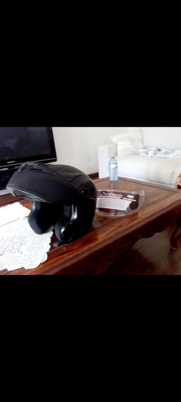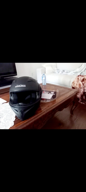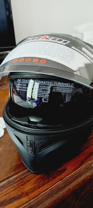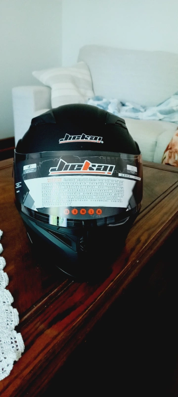 Jiekai motorcycle helmet (Medium-sized) with built-in sunglasses and air vents, With a little button near the chin area to move the chin part of the helmet and two buttons on the side to remove visor. Not used, Brand new ,Exceptional and affordable, with a limited time offer, used to be 75 dollars, now selling for 60 dollars, don't miss out.