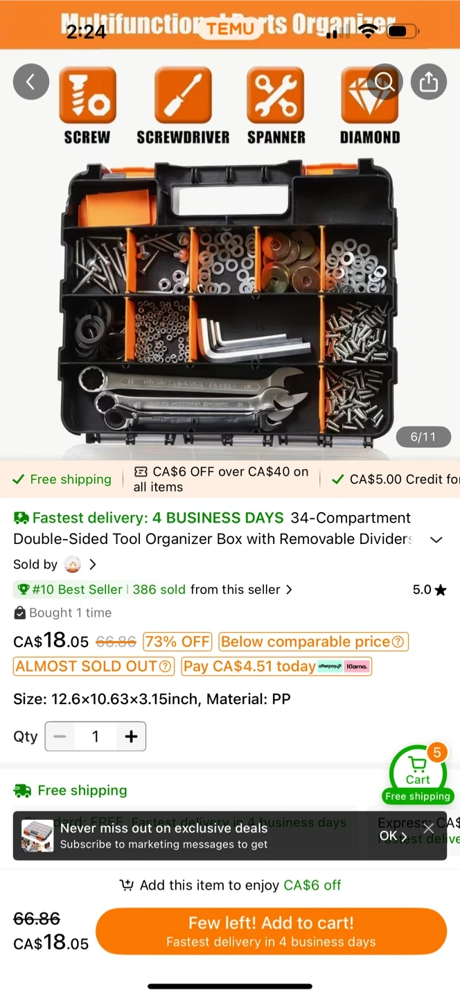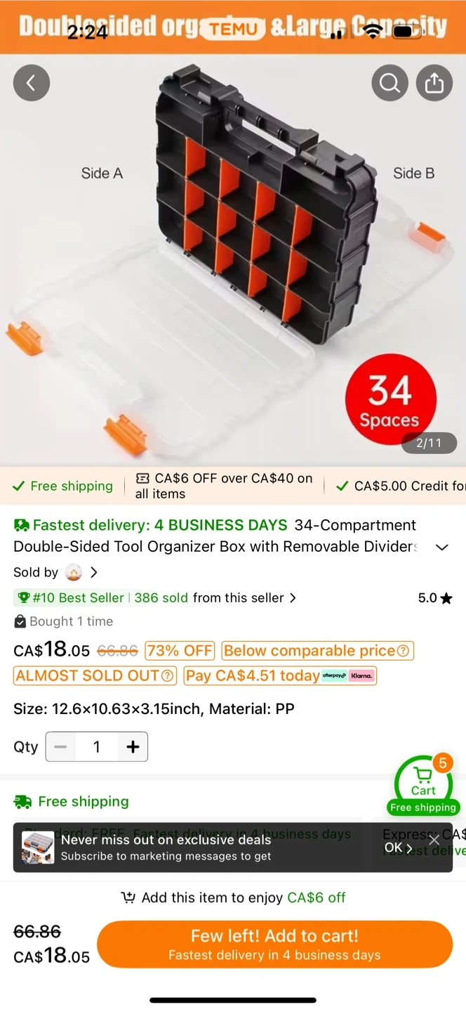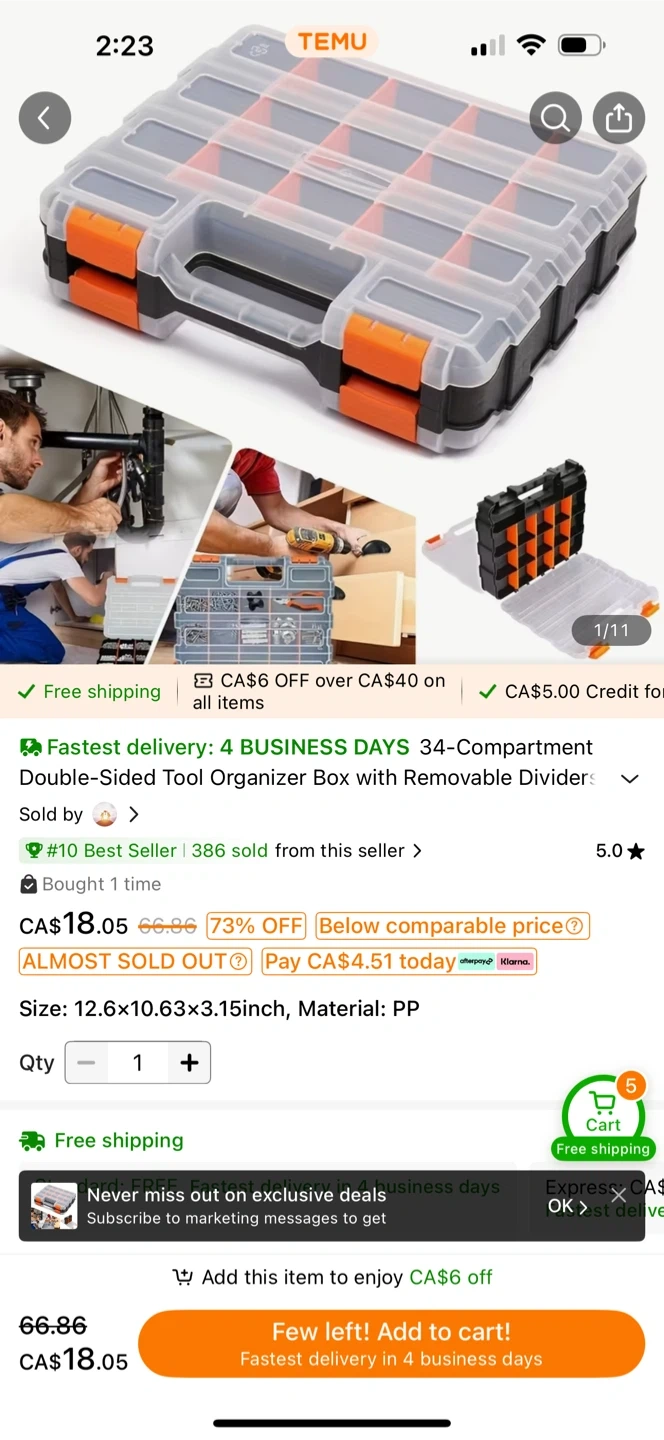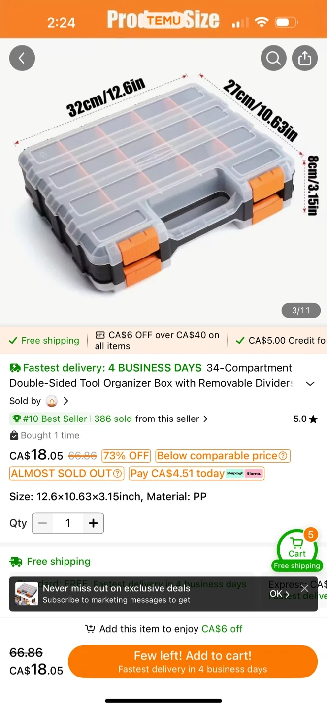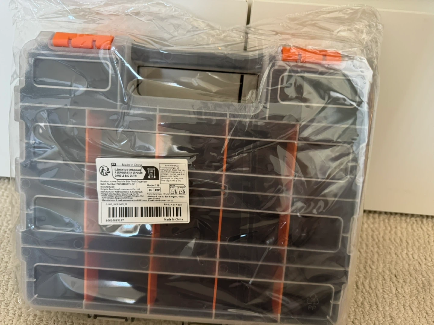 I'm selling a brand new Double-Sided Tool Organizer Box with Removable Dividers! It has 34 compartments and is made of PP material. The size is 12.6x10.63x3.15 inches. A great way to keep your screws, screwdrivers, spanners, and diamonds organized!