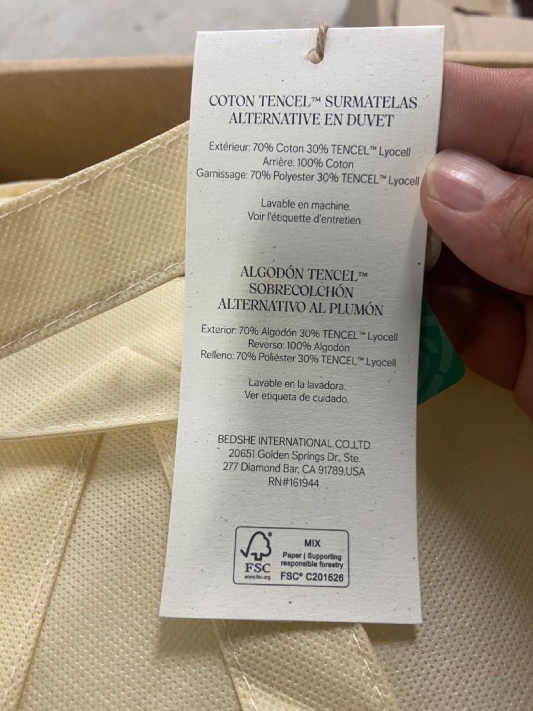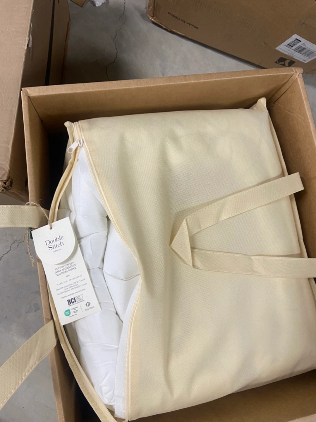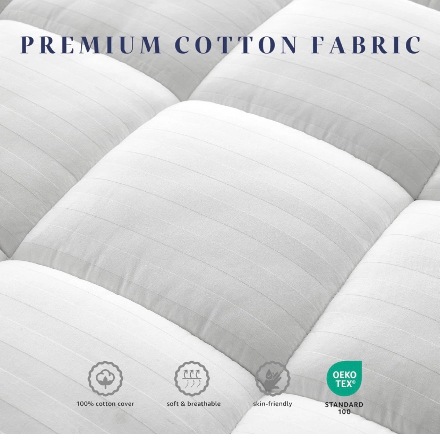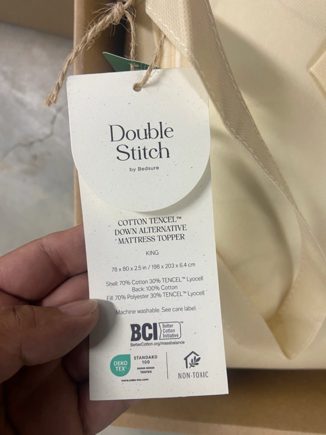 38This is a brand new Double Stitch by Bedsure King mattress topper! It's made with a cotton and TENCEL Lyocell blend, and the fill is polyester and TENCEL Lyocell. It's machine washable, and the size is 78 x 80 x 2.5 inches.