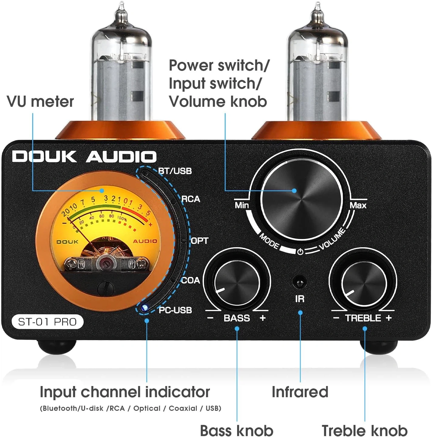 38Looking to enhance your audio experience? This brand new Douk Audio ST-01 PRO amplifier might be just what you need! It features multiple digital audio inputs including Bluetooth 5.0, USB, Coaxial, Optical, and stereo RCA, making it compatible with most audio devices. The amplifier is designed with vacuum tubes to soften the sound and filter out digital feelings, giving you a HiFi clear sound with tone control. It also has treble and bass knobs for adjusting your preferred sound styles