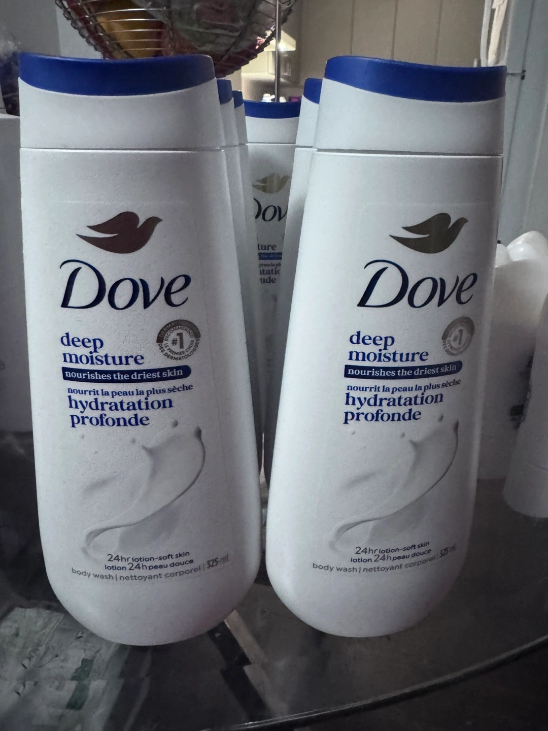 1104$ each Selling a bottle of Dove Deep Moisture body wash. It's a 325ml bottle designed to nourish the driest skin and provide 24-hour lotion-soft skin. It's also a body wash and nettoyant corporel!