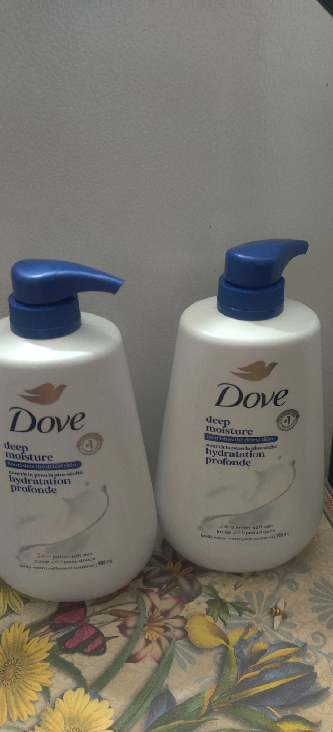 I'm selling 2 bottles of Dove Deep Moisture body wash. It nourishes the driest skin and provides 24-hour lotion-soft skin. Each bottle contains 905ml of body wash.