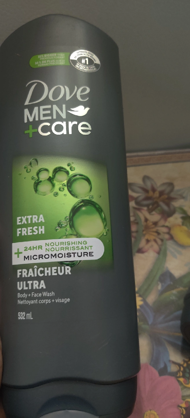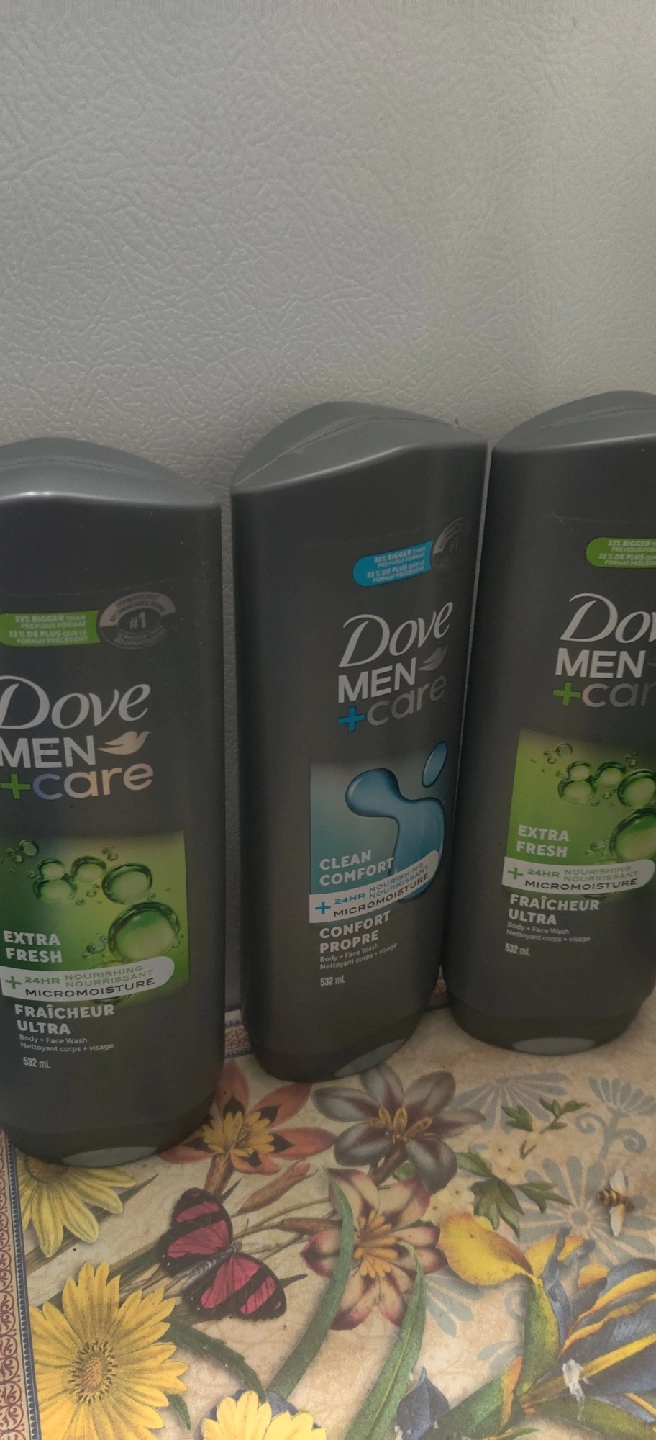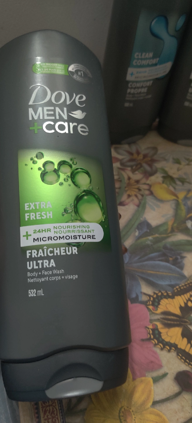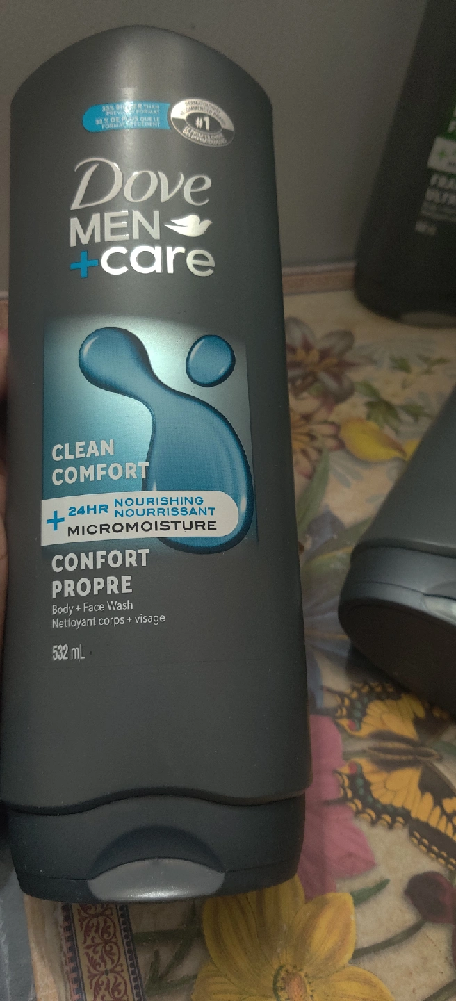 1000+3Dove Men+Care body and face wash in the 532 mL size. It's designed to be nourishing and gentle on the skin. Available in two varieties: Extra Fresh and Clean Comfort