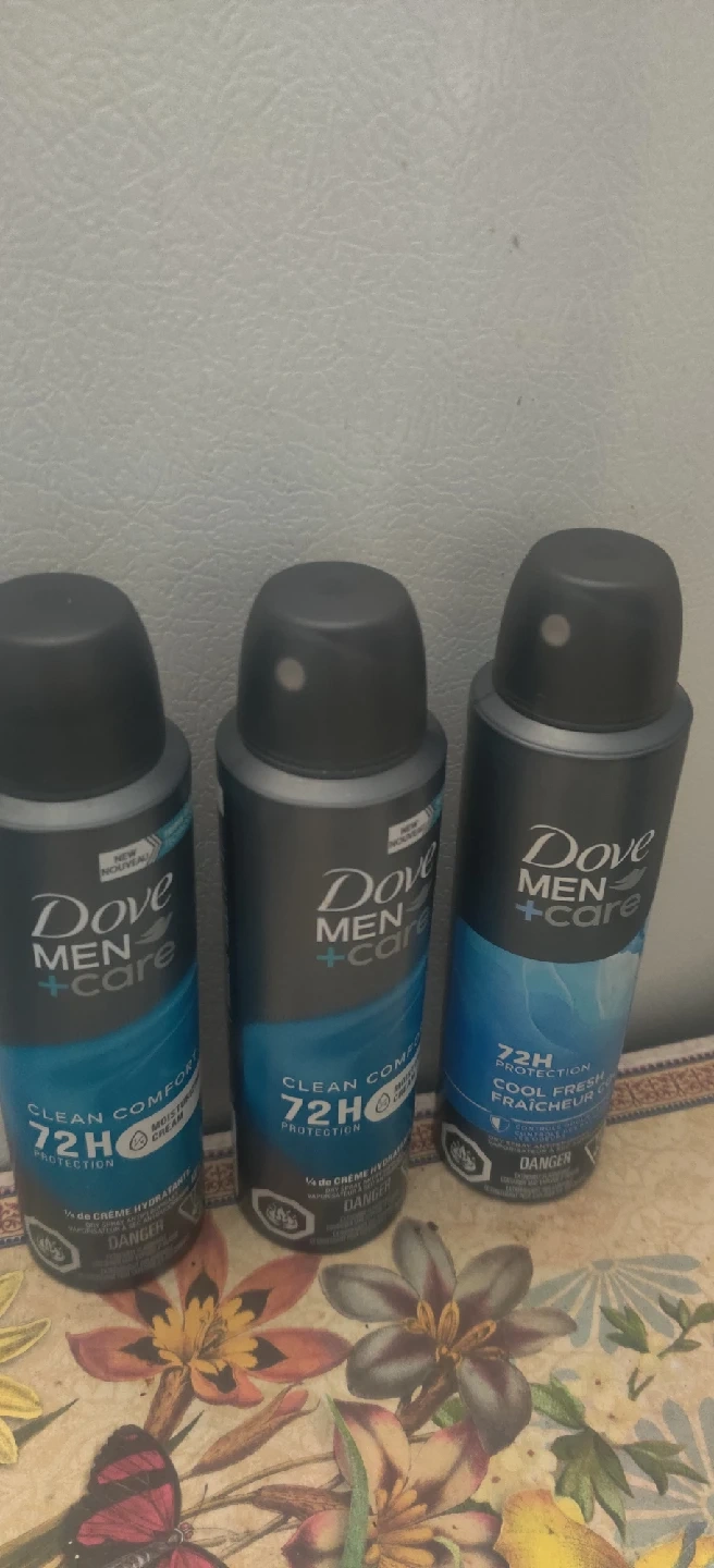 1000+Selling three cans of Dove Men+Care Clean Comfort antiperspirant. It offers 72-hour protection and contains moisturizing cream. Each can is 107g