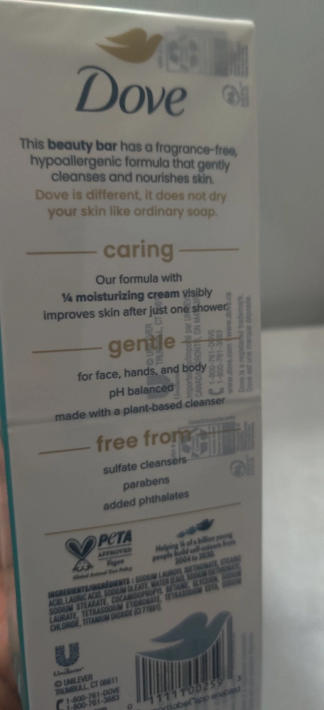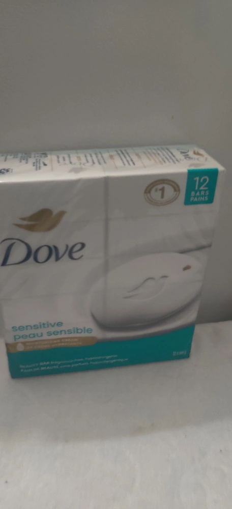Selling a 12-pack of Dove Sensitive Skin Beauty Bars! These bars are fragrance-free and hypoallergenic, perfect for sensitive skin. They're made with a plant-based cleanser and contain 1/4 moisturizing cream to gently cleanse and nourish your skin. Each bar is 106g