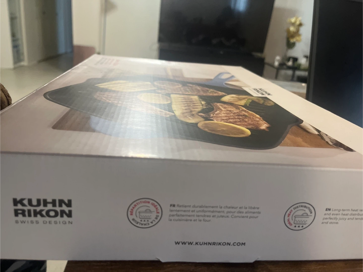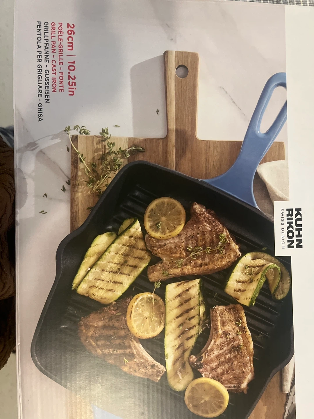 I'm selling a brand new Kuhn Rikon cast iron grill pan! It's 26cm or 10.25 inches and ready for all your grilling needs