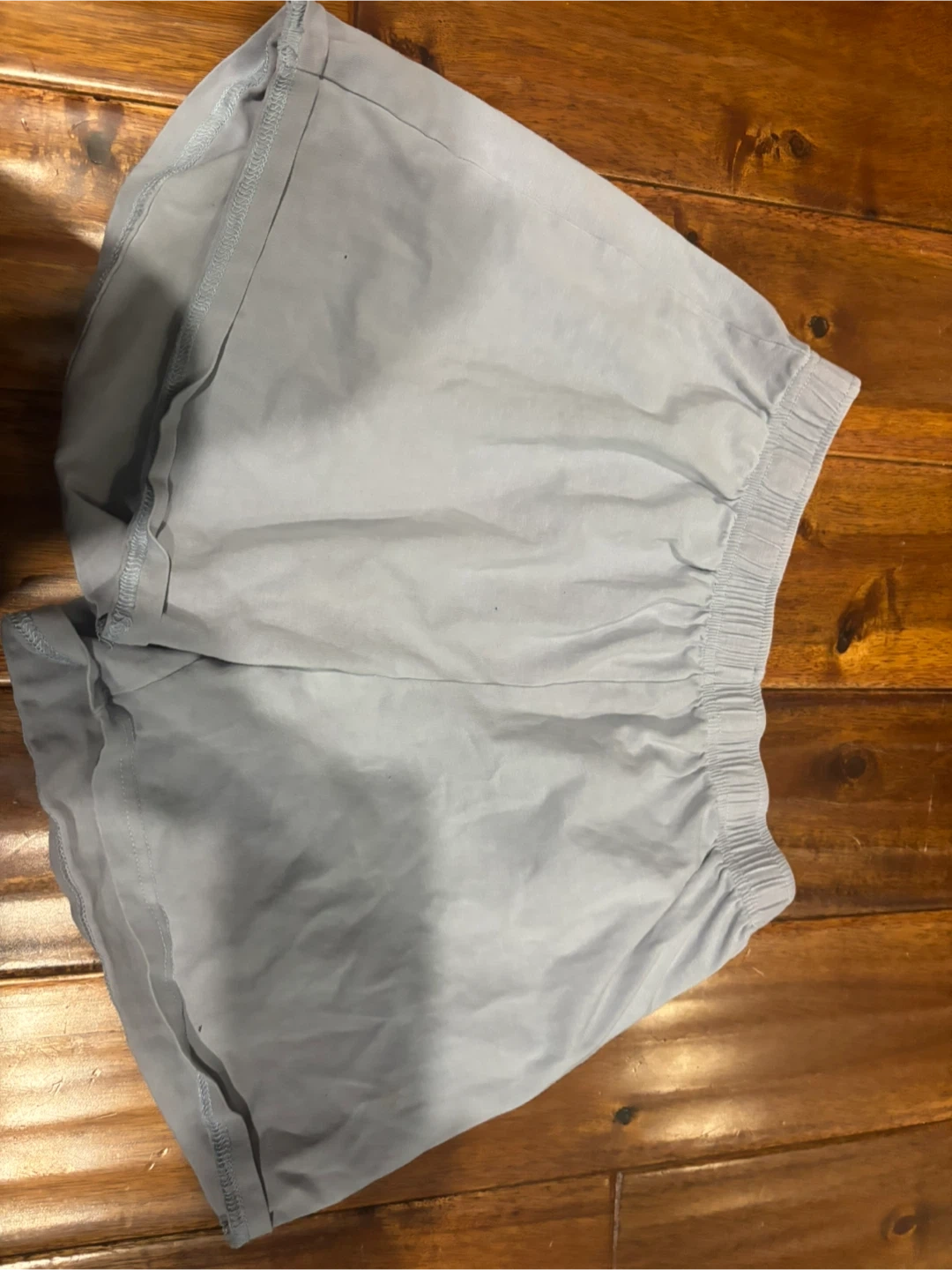 Light blue athletic shorts with an elastic waistband. Made from a lightweight, breathable fabric, they're perfect for workouts or lounging. Elastic waistband for a comfortable fit.