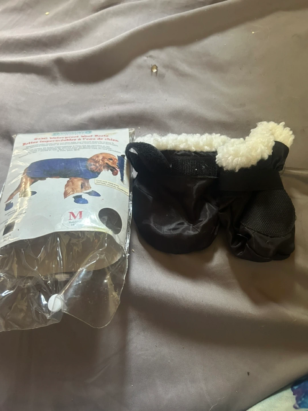 75Keep your furry friend's paws dry with these Downtown Pet Supply Waterproof Woof Boots! They're black, size medium (14-16"). Great for walks in any weather