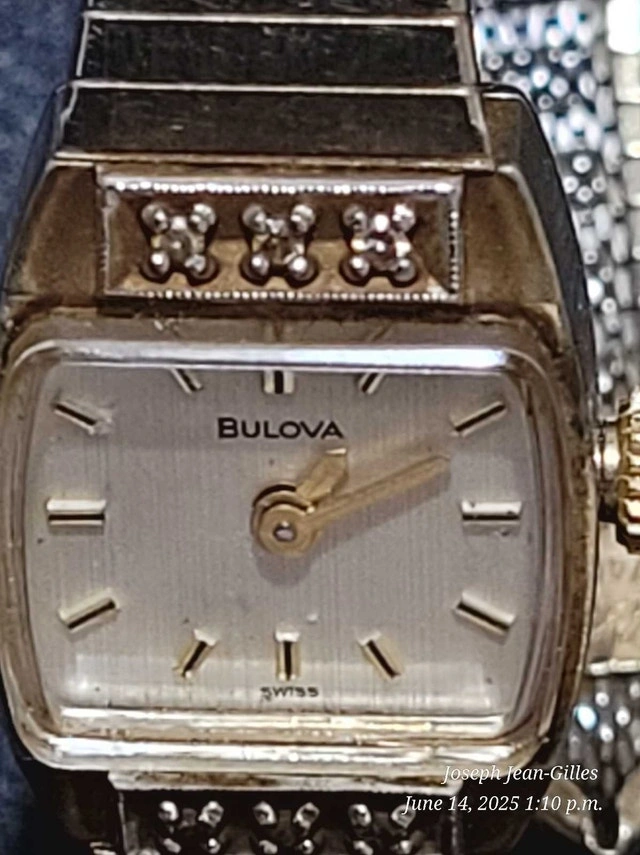 Vintage Bulova Automatic wrist watch for women. Works great, 17 Jewels and Swiss made. 1/40 10kt. Used but in very good condition. Comes without the box. See pictures for details.
