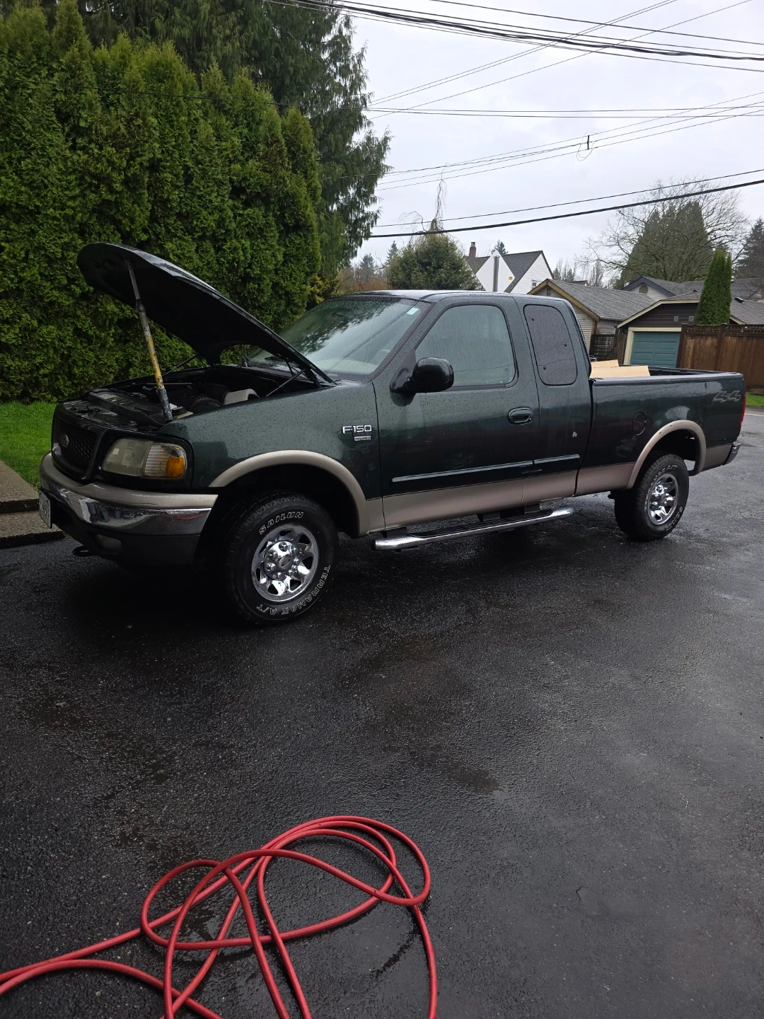 This is a dark green 2002 fully loaded with trailer hitch. Truck is good shape all around Ford F-150 XLT pickup truck. It's a 4x4 model. Good for hauling and off-road use. Runs and drives perfect no problems