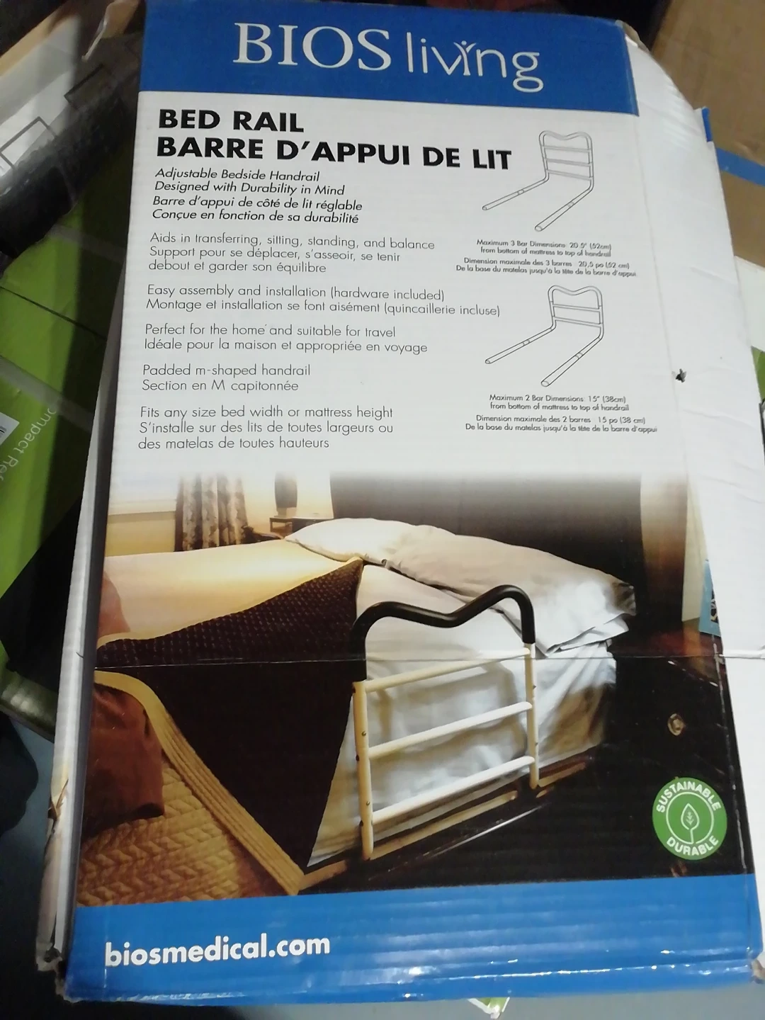 This BIOS living adjustable bedside handrail aids in transferring, sitting, standing, and balance support. It's easy to assemble and fits any bed width or mattress height. The padded m-shaped handrail provides comfort. Perfect for home use and travel!