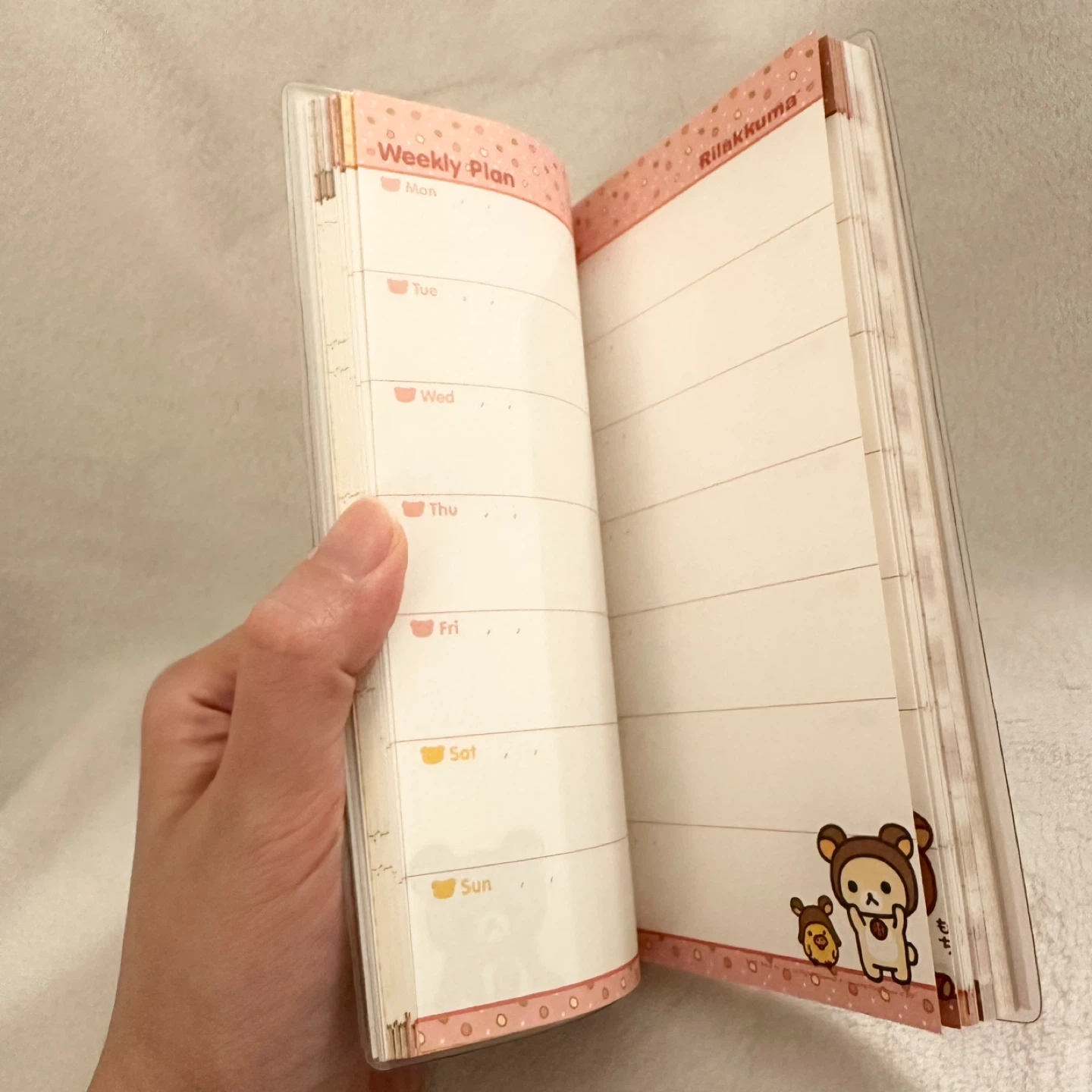 This Rilakkuma planner notebook has cute character designs. It's perfect for organizing your daily schedule. Includes a weekly layout with space for notes.