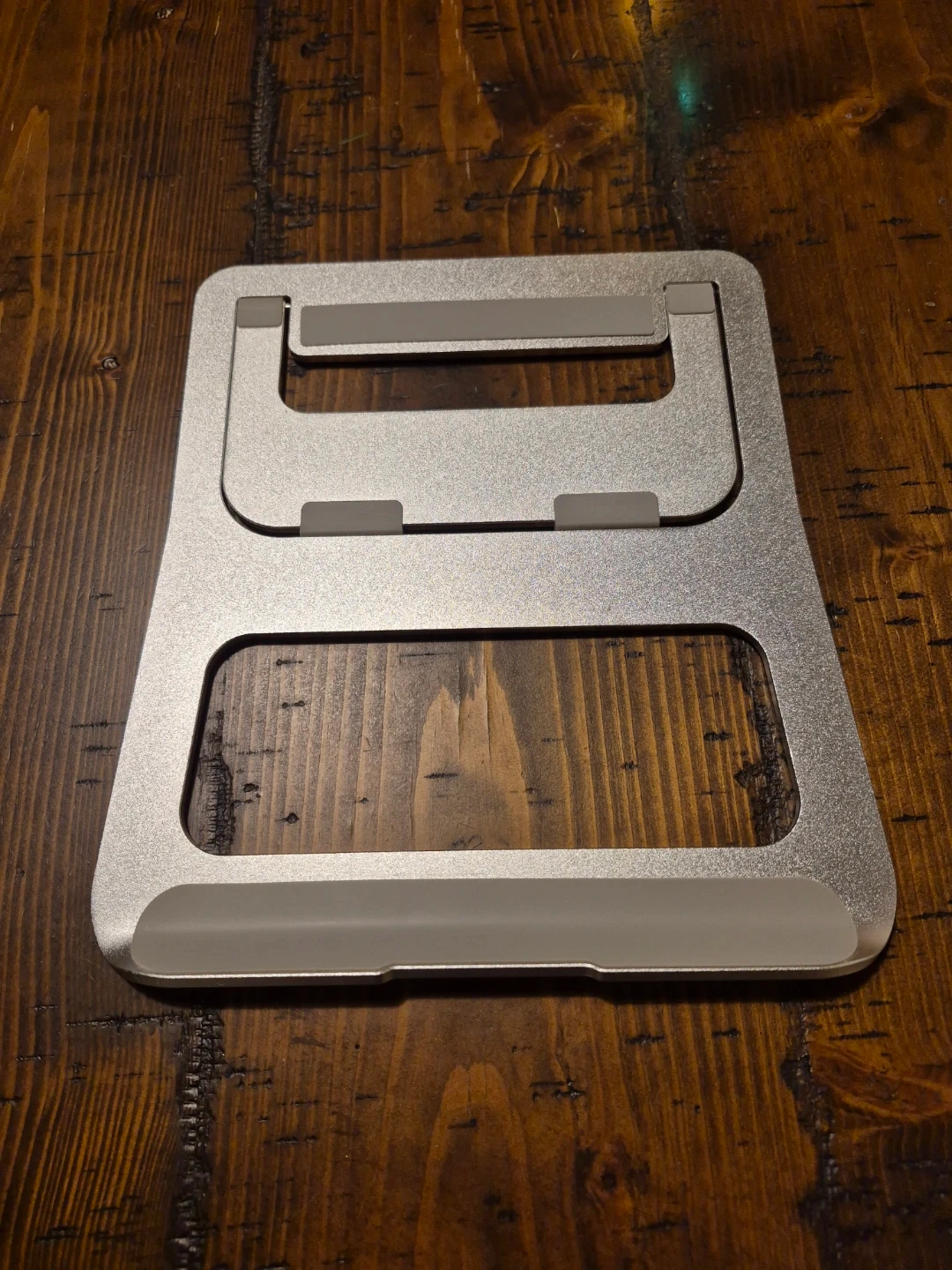 Selling a silver aluminum laptop stand. It's in great condition and perfect for raising your laptop to a more comfortable viewing height. It's lightweight and portable, making it easy to take with you wherever you go