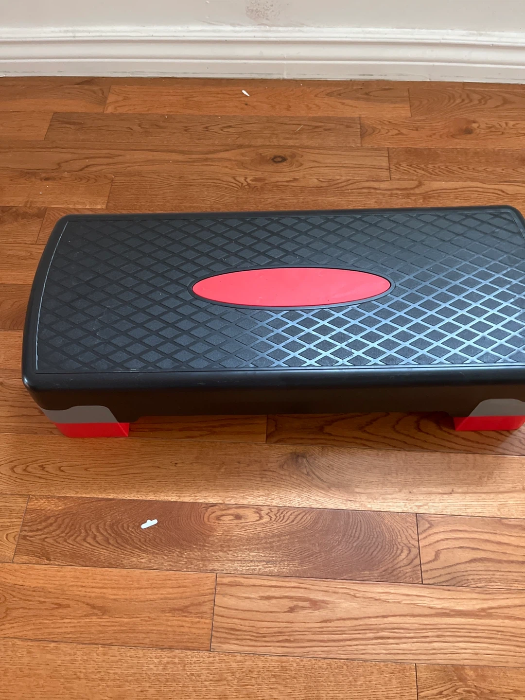 I'm selling an aerobic step platform in black and red. It's great for home workouts and adding some intensity to your exercise routine. It's in good condition and ready for a new home!