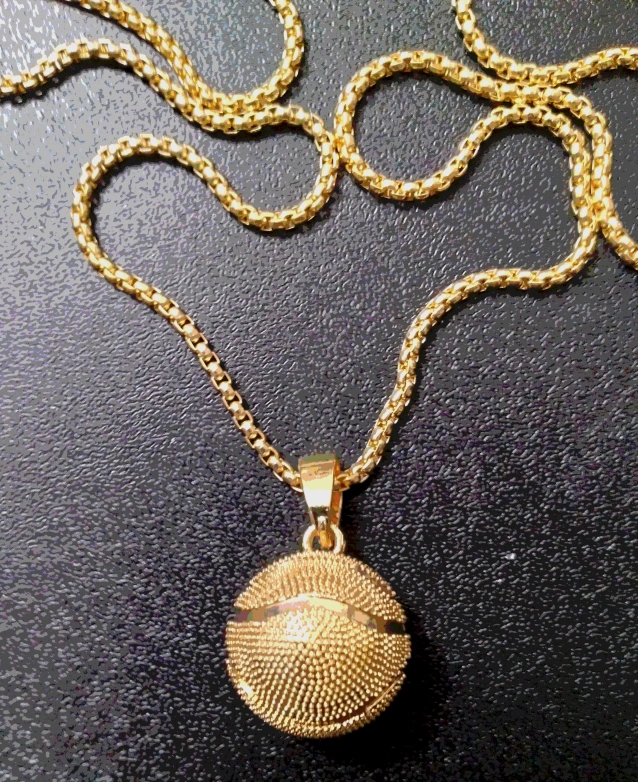Cute Basket Ball Pendant Gold Color 50 CM Chain Unisex