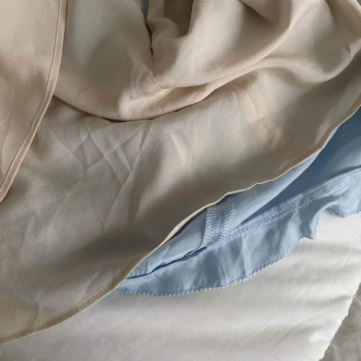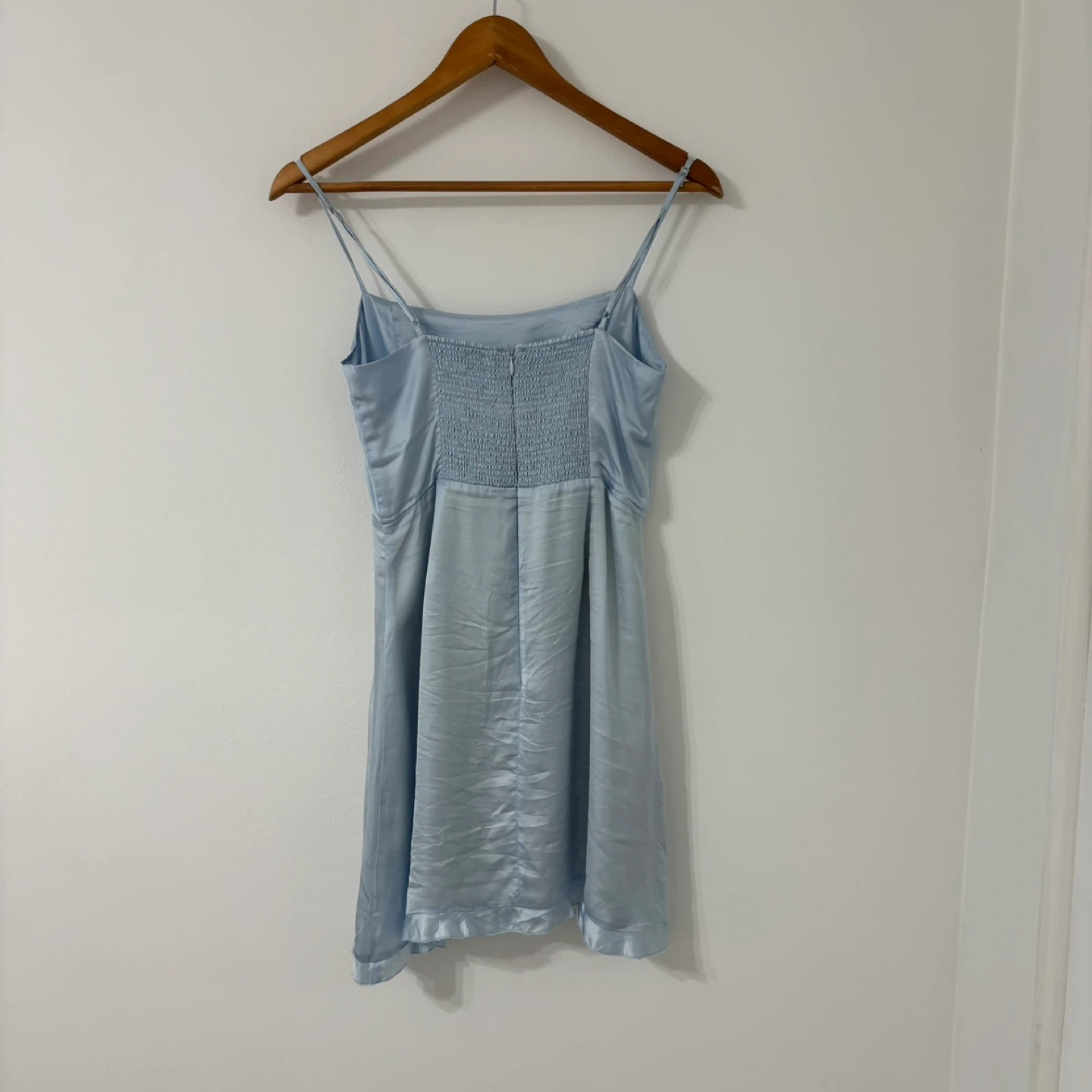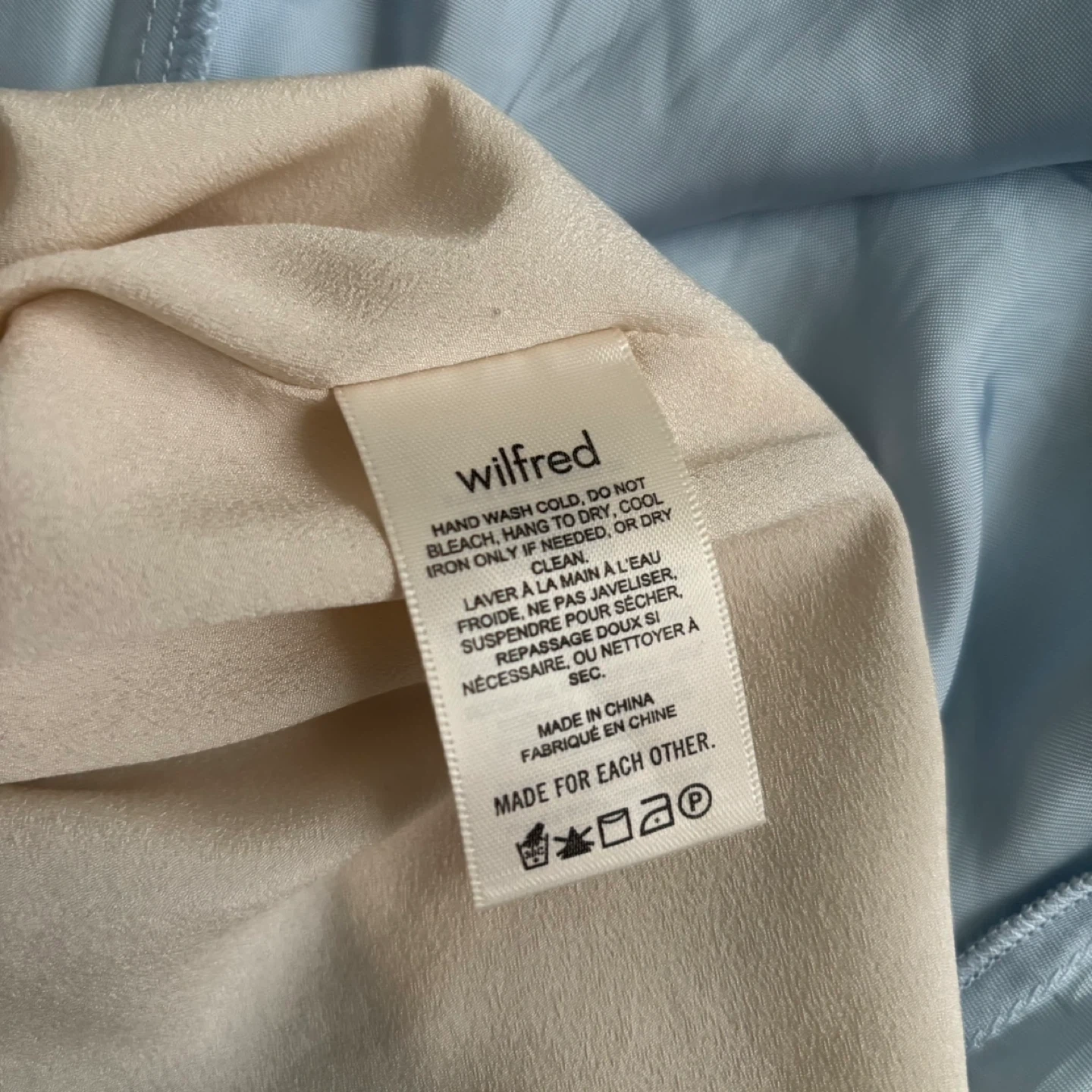 Light blue silky slip dress by Wilfred. It's a size 4 with smocking on the back. Perfect for dressing up or down!