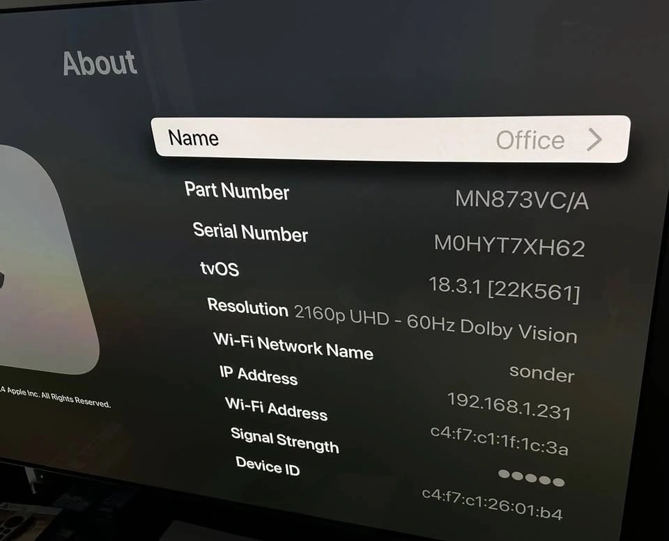 Like new, 9.2/10 condition with some scratches as pictured. Includes original box, power cable, and Siri remote. Under Apple Warranty until Nov 21, 2026. Price is firm. Pickup at Brentwood Mall.