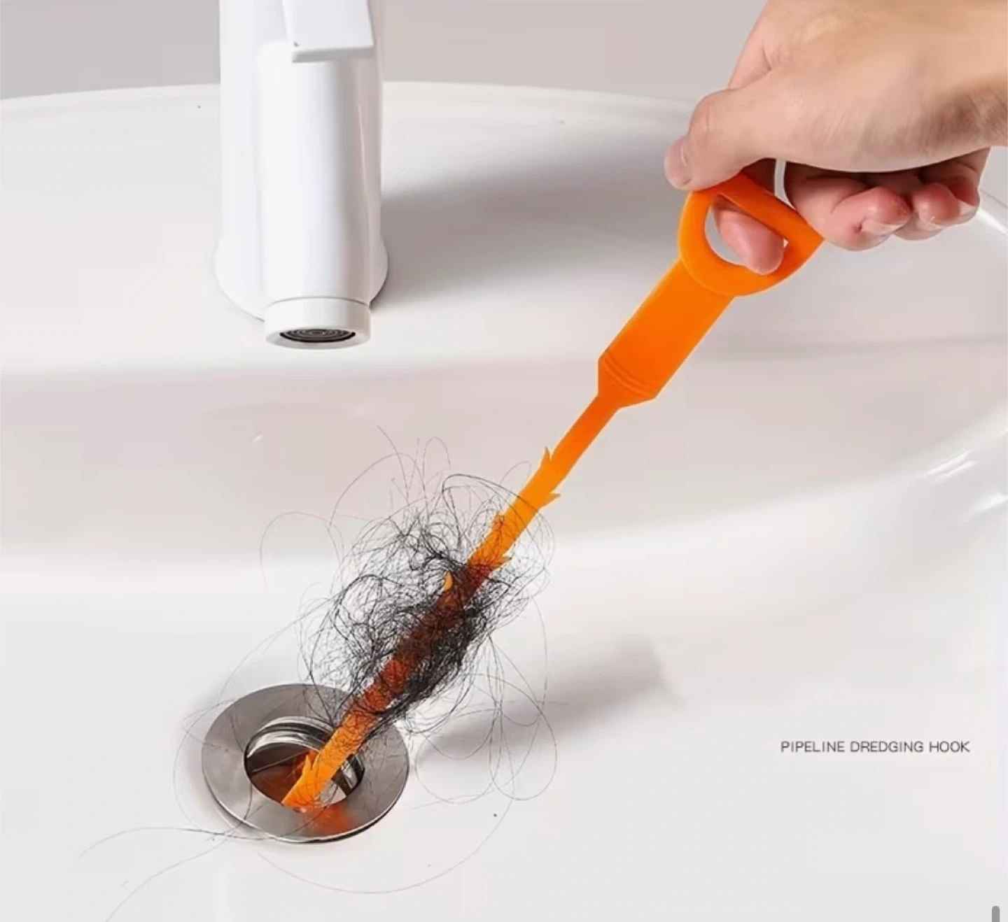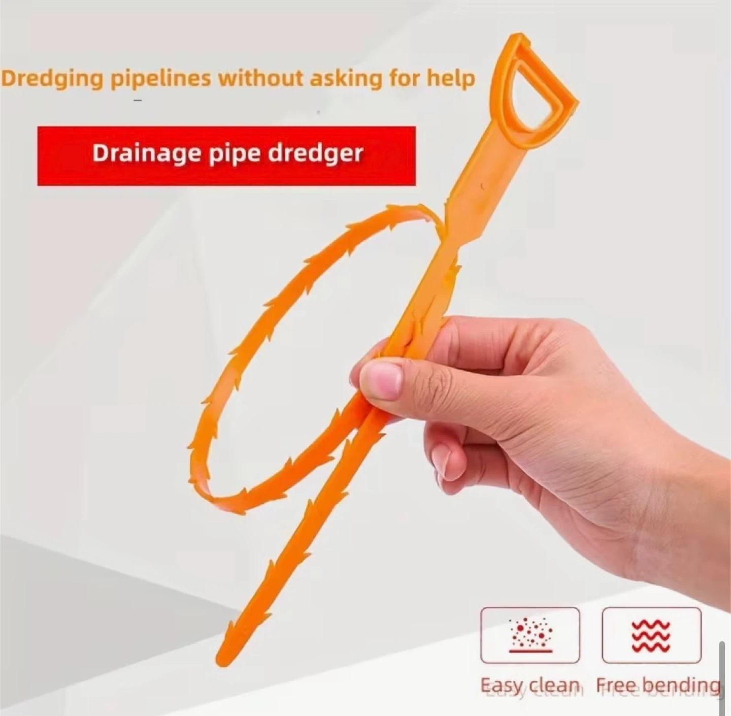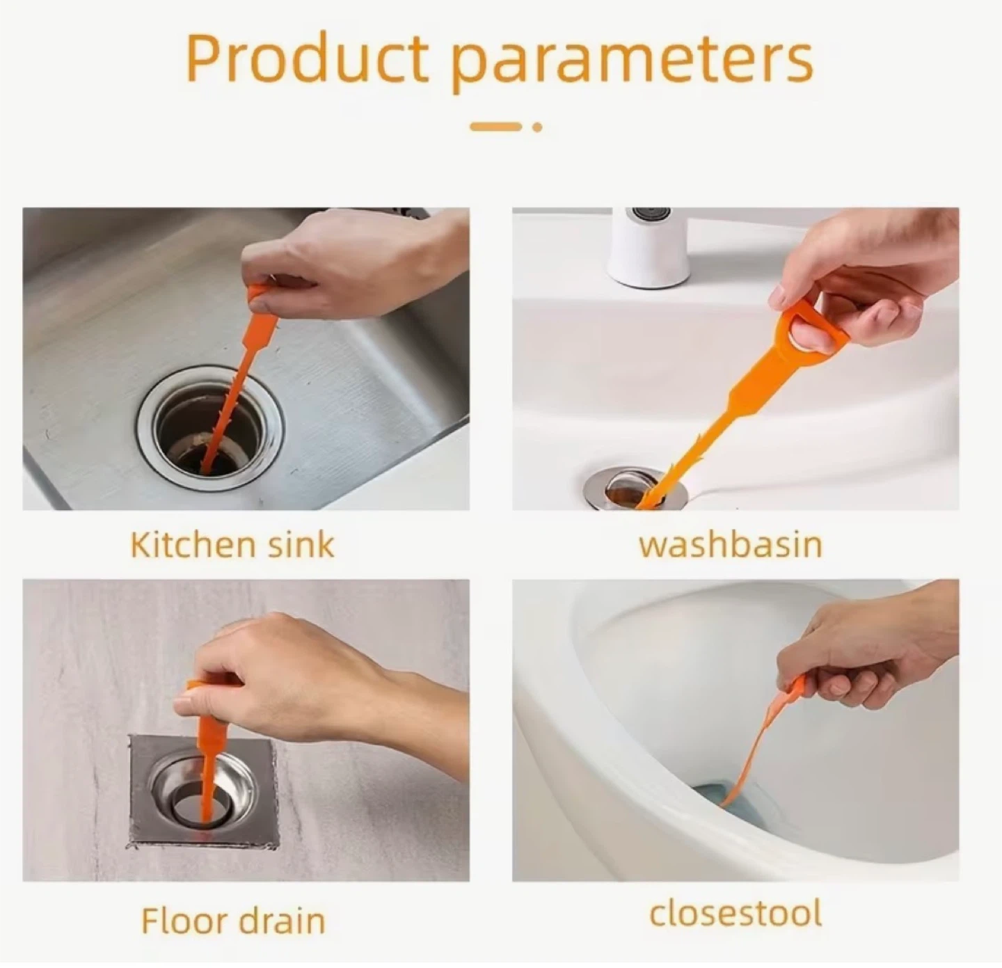 This orange drainage pipe dredger tool is 64cm (25.20 inches) long. It's designed for clearing blockages in kitchen sinks, washbasins, floor drains, and even closestools. Its flexible, barbed design grabs hair and debris easily, making pipe cleaning straightforward!