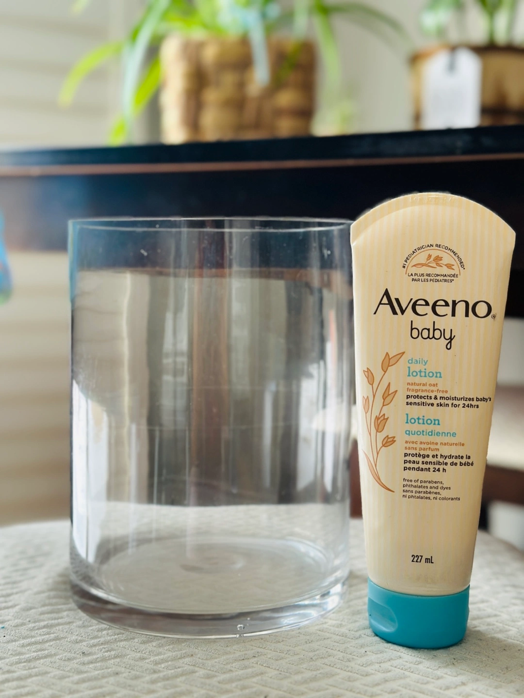 Tall cylindrical glass vase. Perfect for displaying flowers, candle or other decorative items. Simple and elegant design.