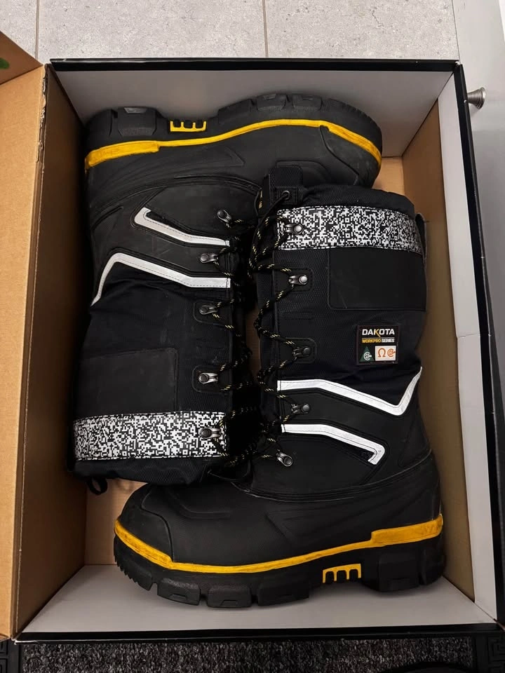 Bought these CSA Insulated Winter Work Boots a couple of months ago and worn only a couple of times. They are in excellent condition, no longer needed. No damage, nothing wrong. Size 9. Lightly used, clean inside and out. Warm fleece-lined interior for extreme cold. Durable waterproof material exterior. Strong industrial laces. Cushioned interior with good ankle support. Anti-slip rubber sole with strong grip (orange traction pads). These boots are built for tough winter conditions—warm, waterproof, and very durable. Great for winter. Keeps your feet warm and protected. Original price $240.