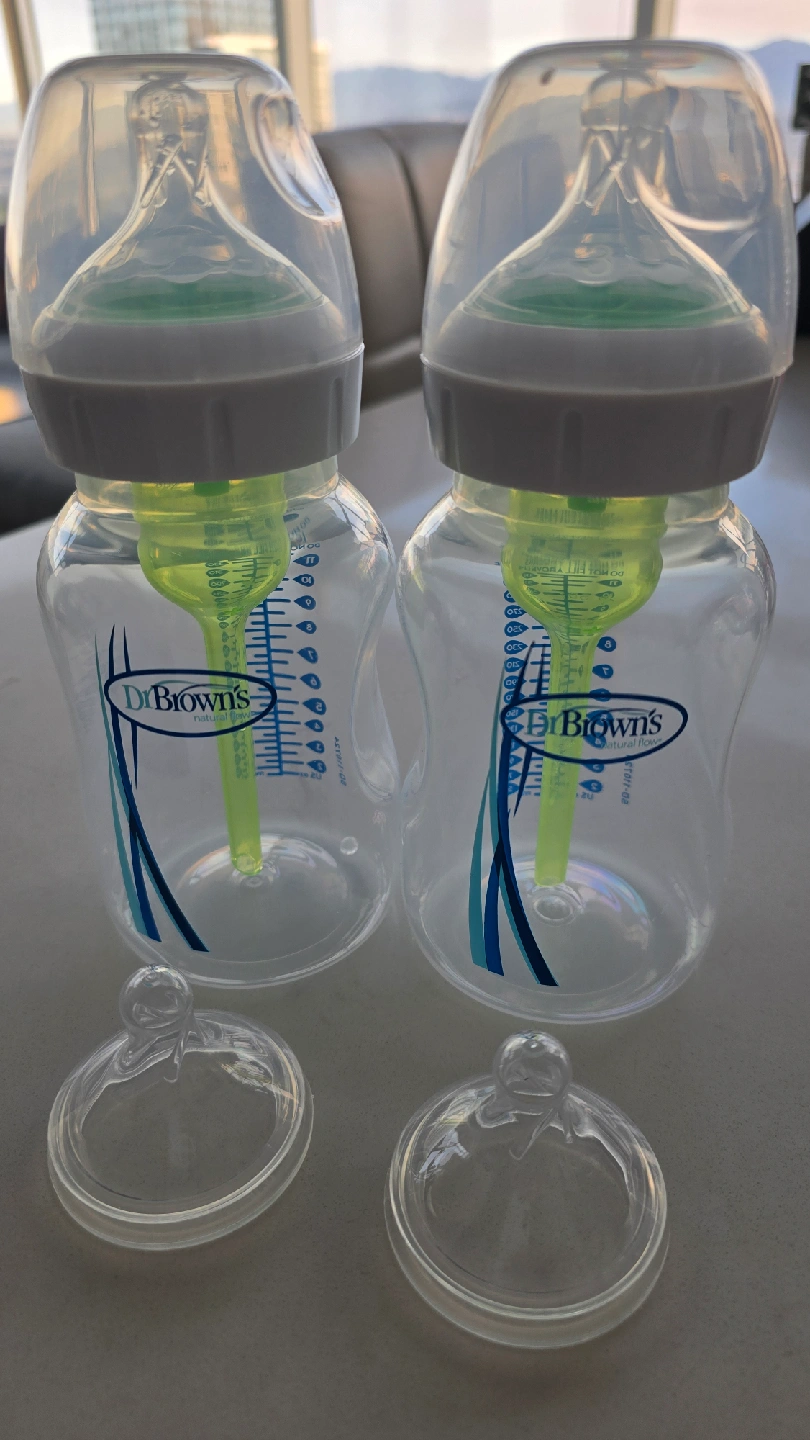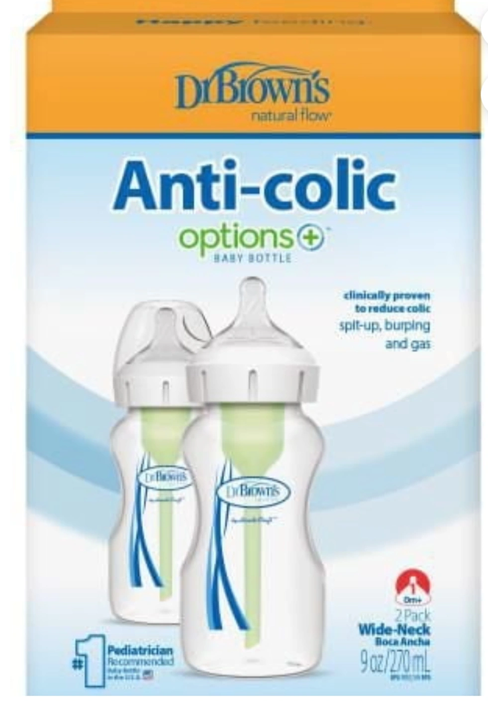 Selling a 2-pack of Dr. Brown's Anti-Colic Options+ baby bottles! These bottles are designed to reduce colic, spit-up, burping, and gas. They are clinically proven and recommended by pediatricians. Each bottle holds 9oz/270ml. not used and very new