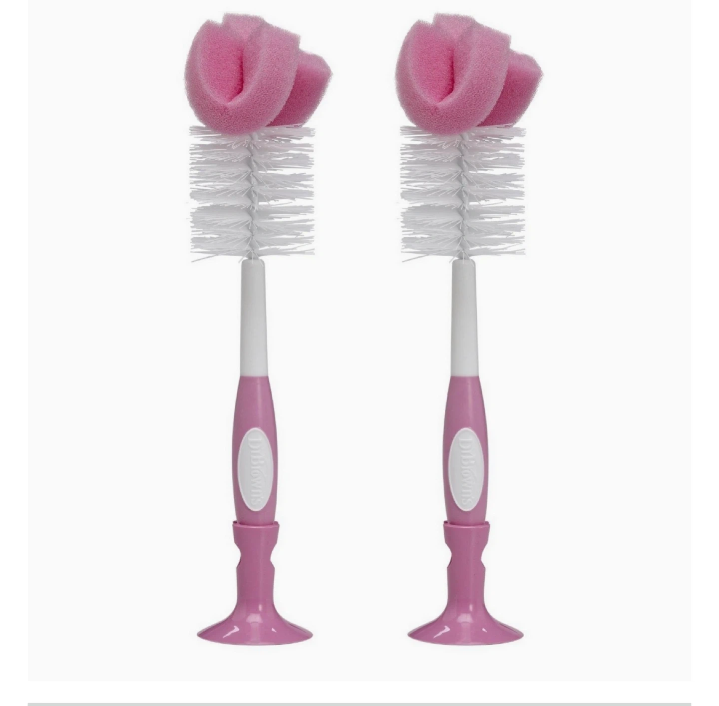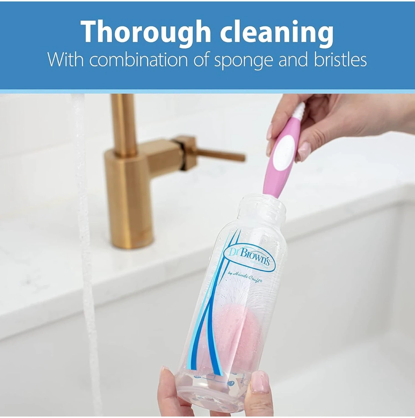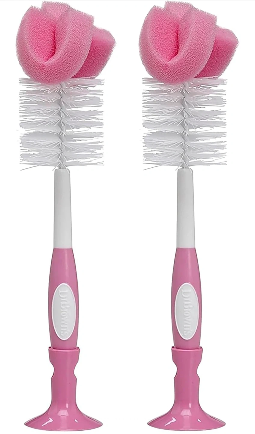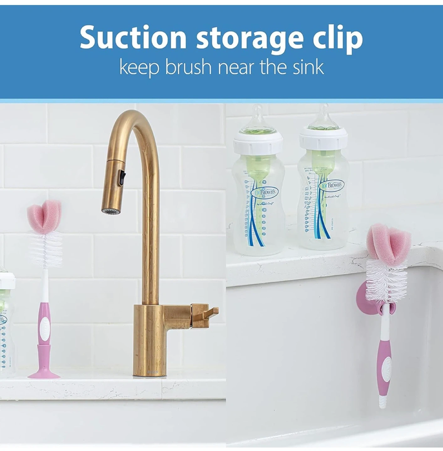 23Keep your little one's bottles sparkling clean with this Dr. Brown's baby bottle brush! It features a combination of sponge and bristles for thorough cleaning. The suction storage clip helps keep the brush near the sink for easy access. Perfect for any parent!